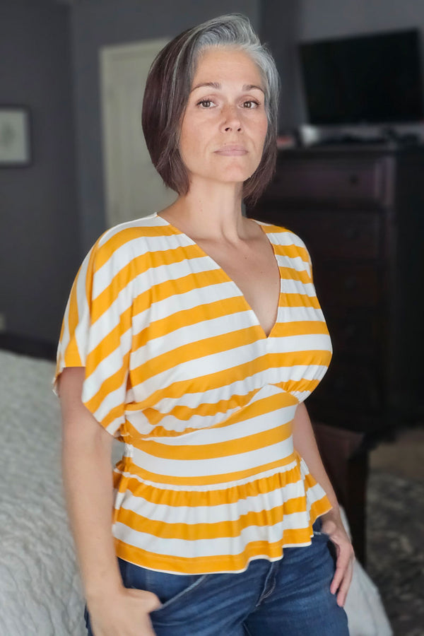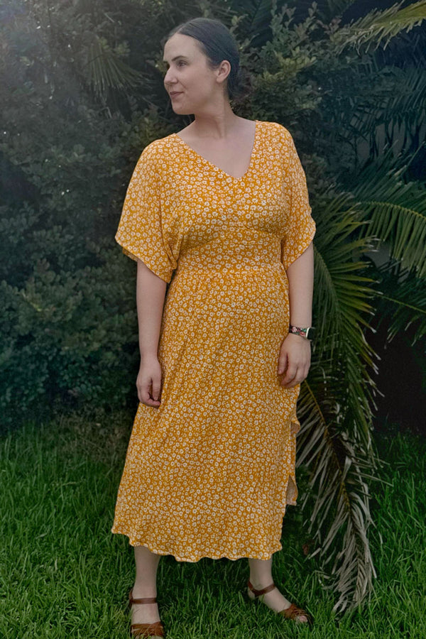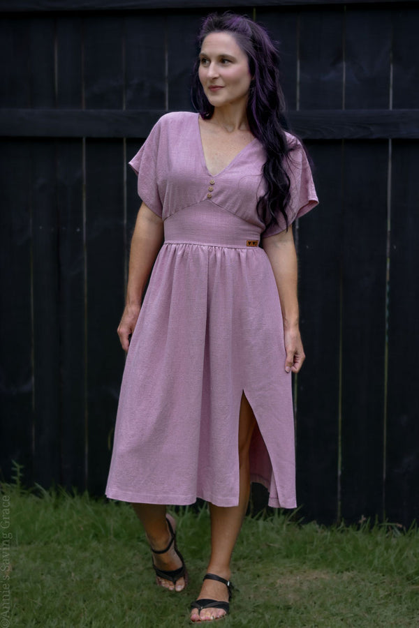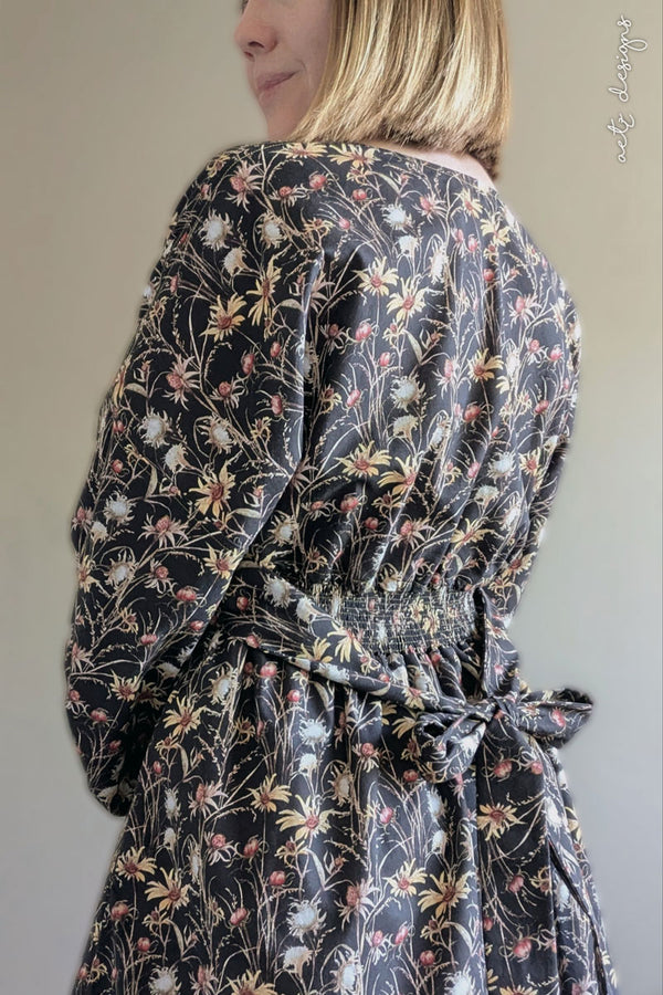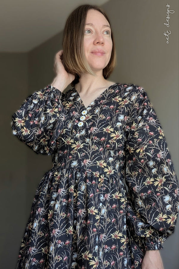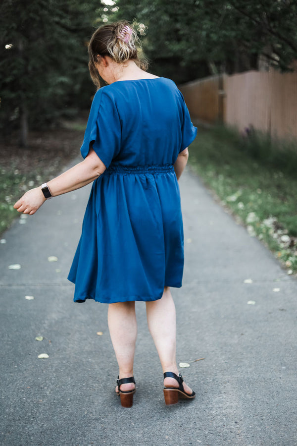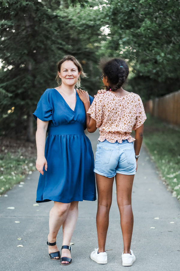 Avalie is an exquisite combination of both beauty and comfort. The airy design combined with the clean, crisp feeling of woven fabric (or your favorite buttery knit) will leave you feeling indulged. Avalie creates a striking silhouette with a slightly fitted waist that is beautifully contrasted by flowy sleeves. A shirred waistband in the back bodice provides extra comfort and dressing ease. Back waist ties add interest, while the skirt options provide greater versatility and make Avalie the perfect choice for all occasions!