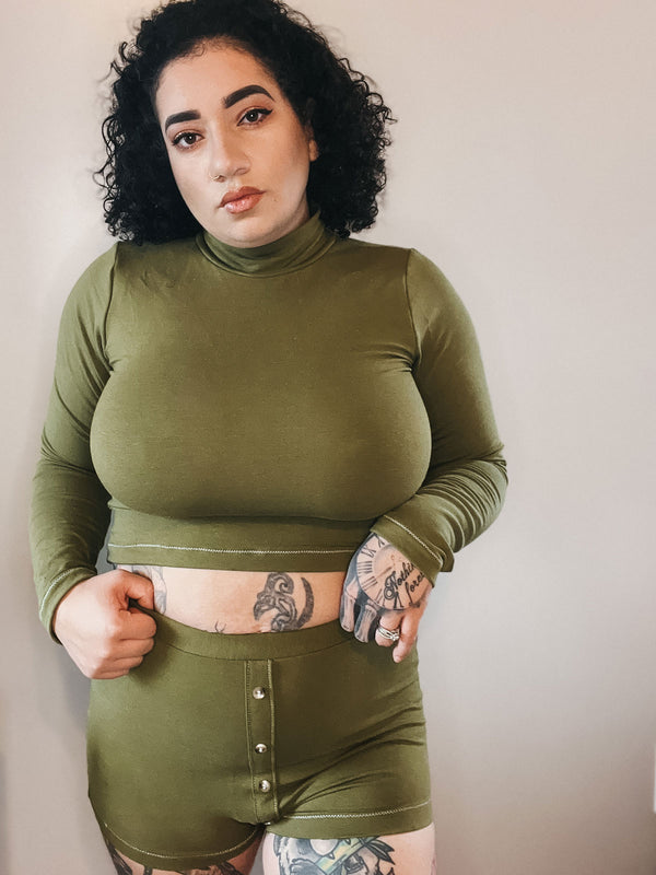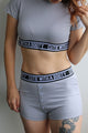 This trendy two piece lounge set is sure to be a staple in your wardrobe! Both the lounge crop and boxers are loaded with options so you can customize a set to suit your preferences.