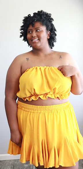 We can't not talk about this skirt, right? If you love a good statement hemline then look no further than Dani! Move over ruffles- the godet is here to stay! They not only add just the right amount of volume but they are even serger friendly!