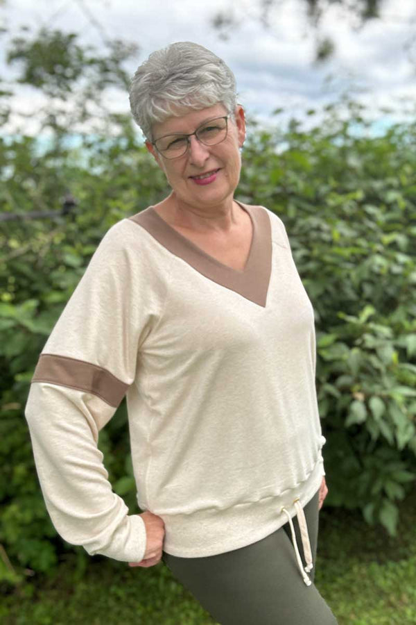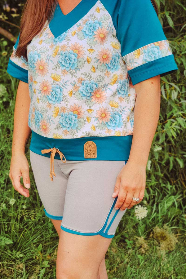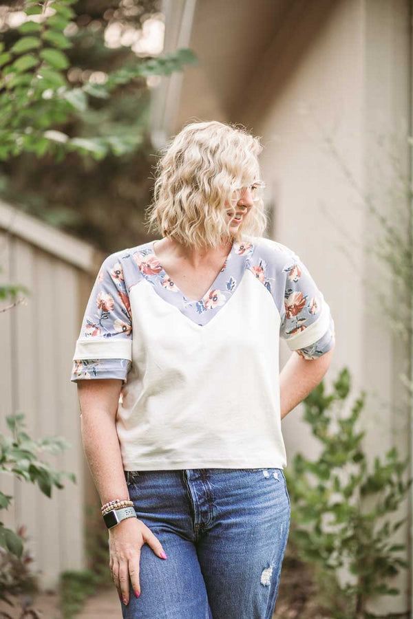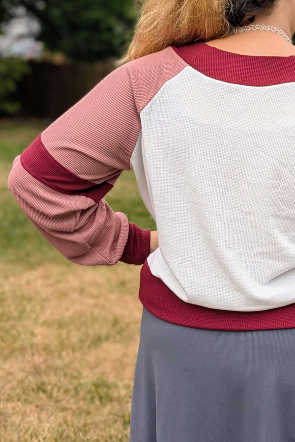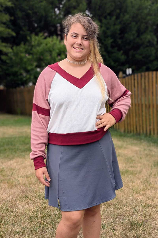 The Hollis Raglan Jersey is the perfect top for back-to-school, sporting events, or just lounging around. This versatile pattern offers a thin or wide V-neckline, short or long raglan sleeves with a thick stripe detail, and two hem options: a banded hem with an optional drawstring or a stylish hi-low hem. The Hollis combines comfort and style, making it a must-have in your wardrobe.