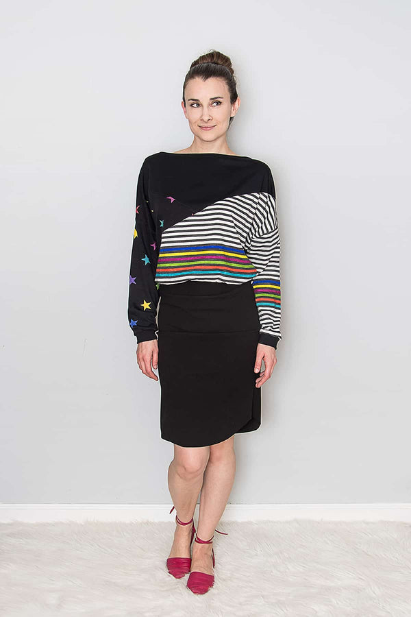 Get excited about the new Janie pattern! This pattern is packed with options! Janie offers 2 necklines: boatneck and crew neck. Choose from short, simple long or bishop long sleeves. Make a dress or make separates. The skirt options are pencil or curved hem. You can choose from mini, knee or midi lengths! Not only that, you can make a color block bodice or a simple bodice! So many ways to make the Janie, what will you do first?