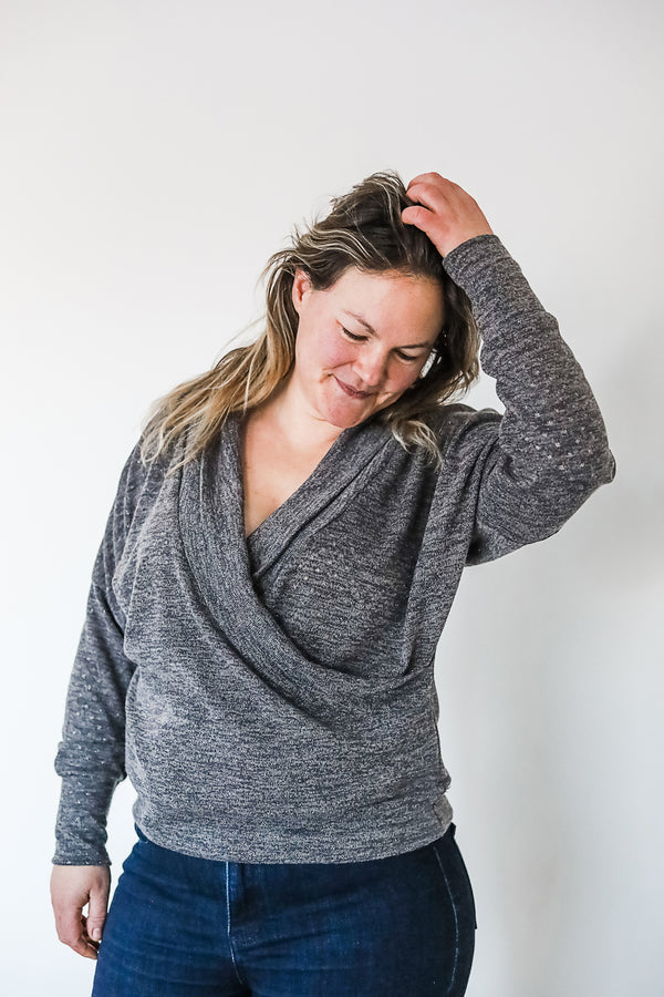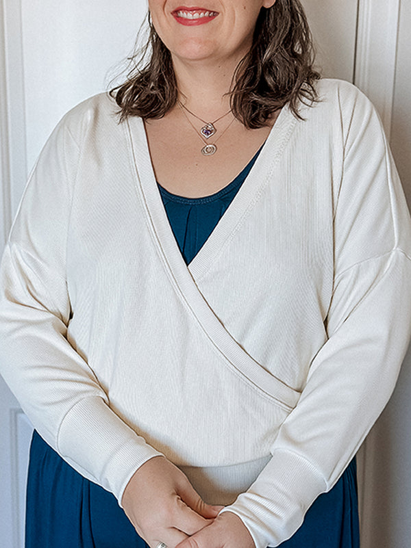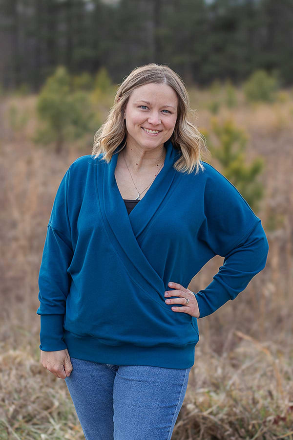 The Mira Crossover Sweater makes sewing a breeze with its dolman-style bodice and chic tall cuffs. You can personalize your look by choosing between a sophisticated fold-over shawl neckband or a sleek thin one, ensuring your neckline matches your vibe. With options for modest crop, top, or tunic lengths, this pattern is designed to cater to everyone’s unique style. Enjoy the flexibility and create the sweater that perfectly fits your individual flair!