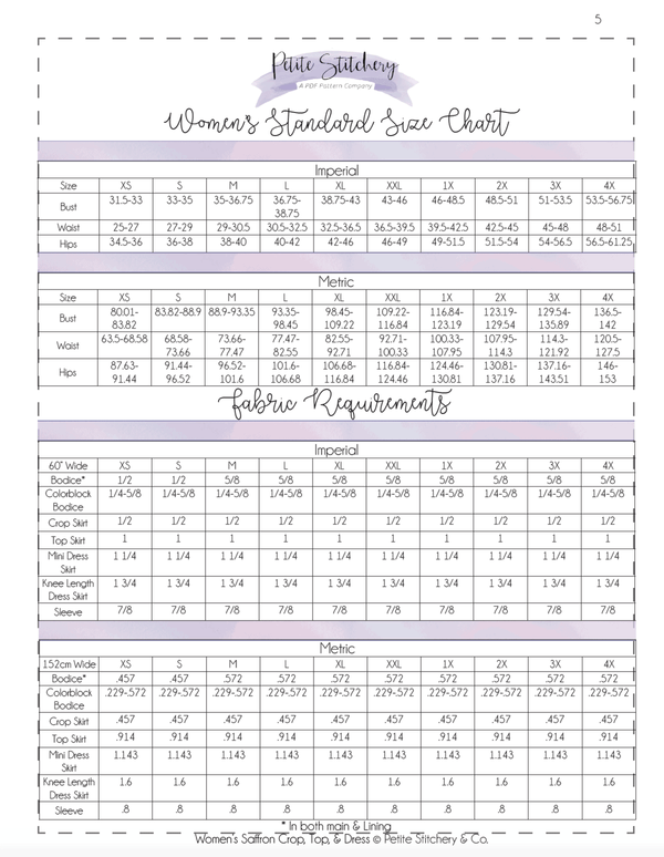 The Women’s Saffron Crop, Top, & Dress is the perfect quick-sew woven garment for year round wear! Saffron is available in Women's Xs-4X and has of tons options to get you through any season! Check out some of these features: