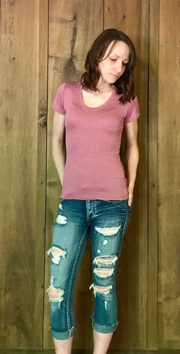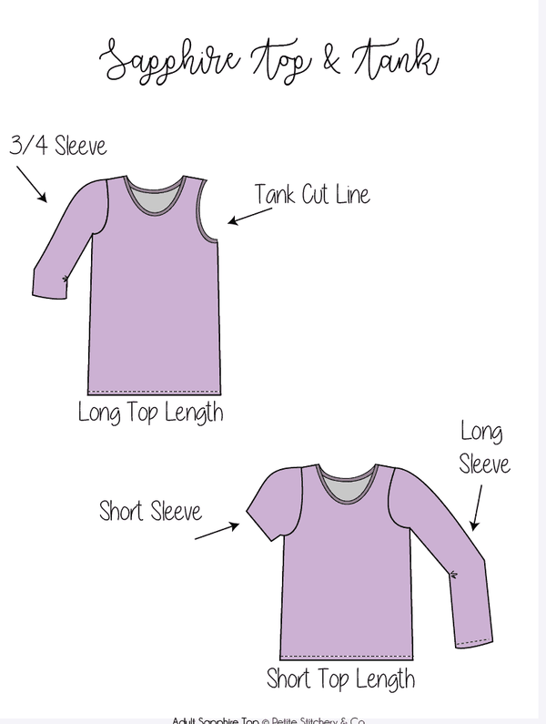 The Sapphire pattern is a knit layering top full of options. There are 3 different sleeve lengths. This patterns includes bodice for B, C, D and DD cup. This top is perfect by itself or as a layering piece.