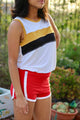 Skye is a vintage inspired Ringer Tee! Choose from sleeveless, short or long sleeves. Skye comes with a crop or top hem length option! There are 3 different amazing color block options to choose from!