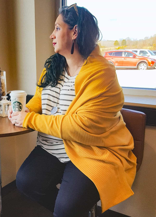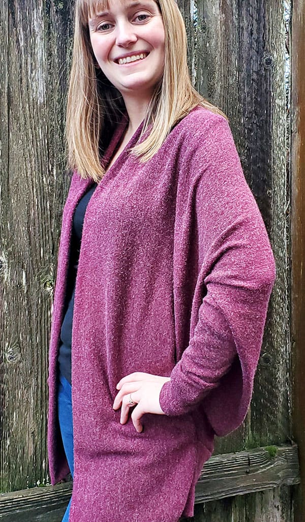 The Sloane Slouchy Cardi is the ultimate comfy sweater. The batwing style and banded hems make this sweater a breeze to sew and the slouchy fit is perfect for replicating those slouchy sweater Pinterest looks! The Sloane Cardi is sure to be a staple in your wardrobe year round!