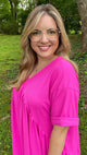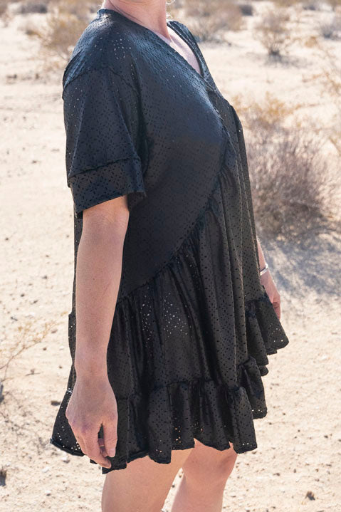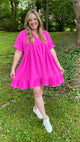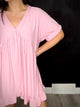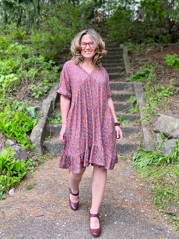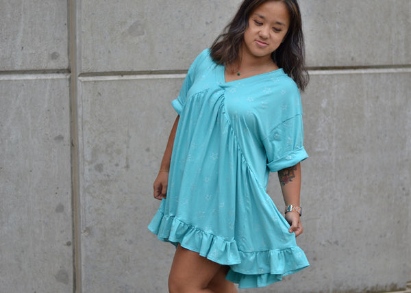 The adorable V neck, cuffed short sleeves and mini or dress length finish will be sure to be your favorite warm weather pattern.