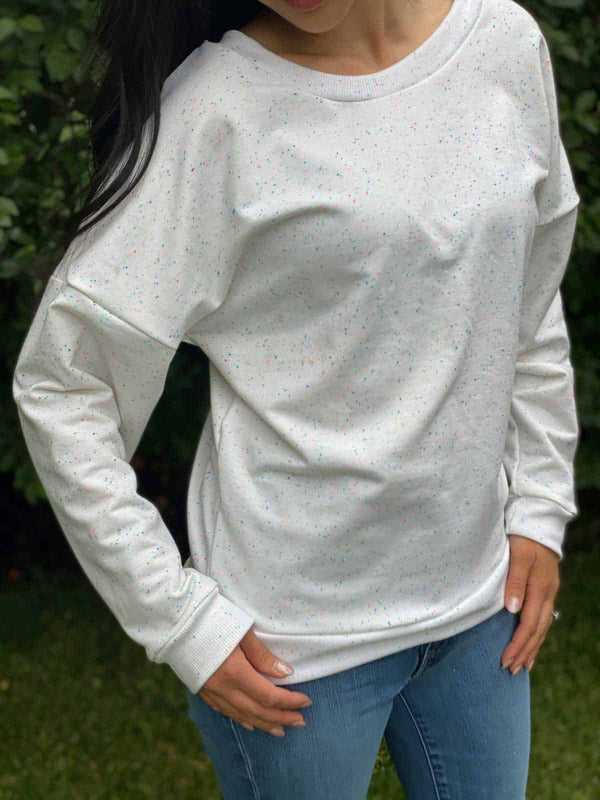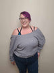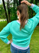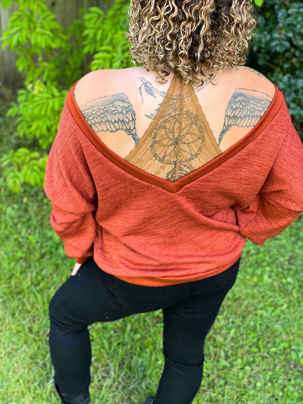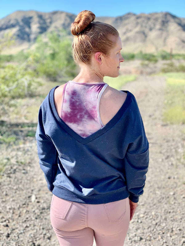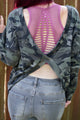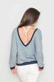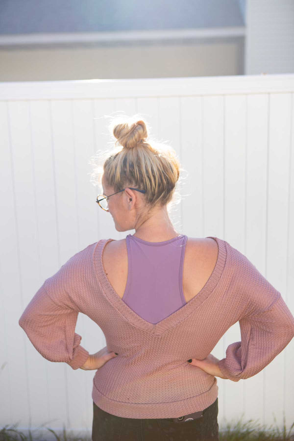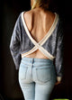 The open back features and relaxed fit makes this the perfect sweater to layer over all your favorite summer bralette tops and tanks!