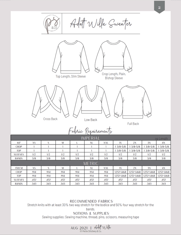 *Stretch knits with 30% stretch for the body. 50% 4 way stretch is required for the cuffs and bands.