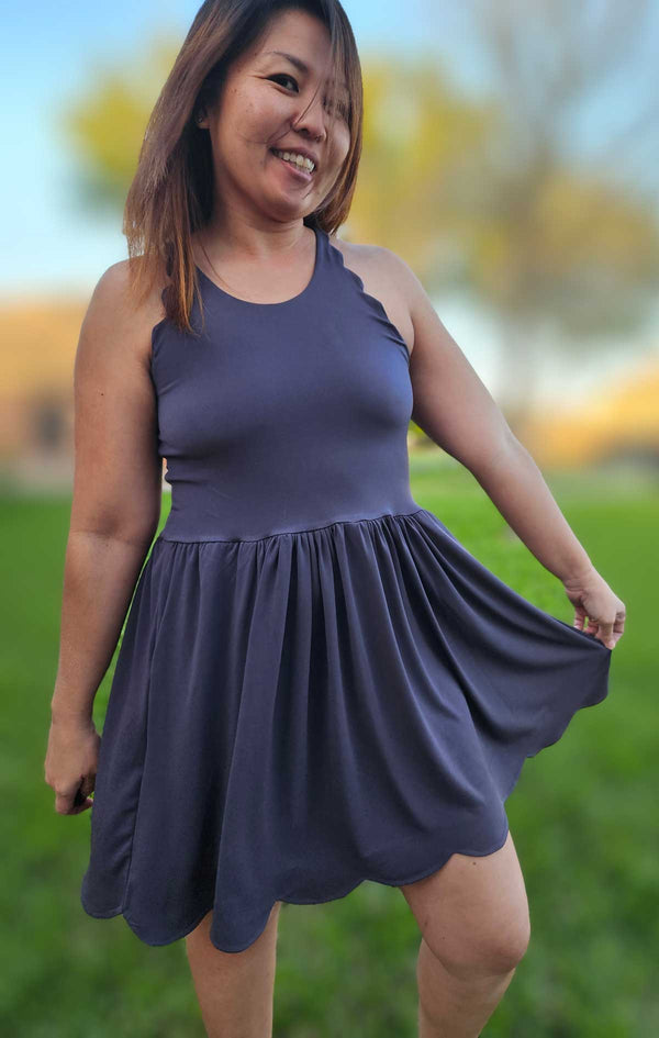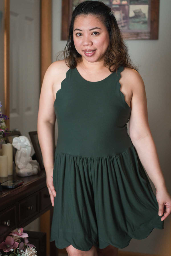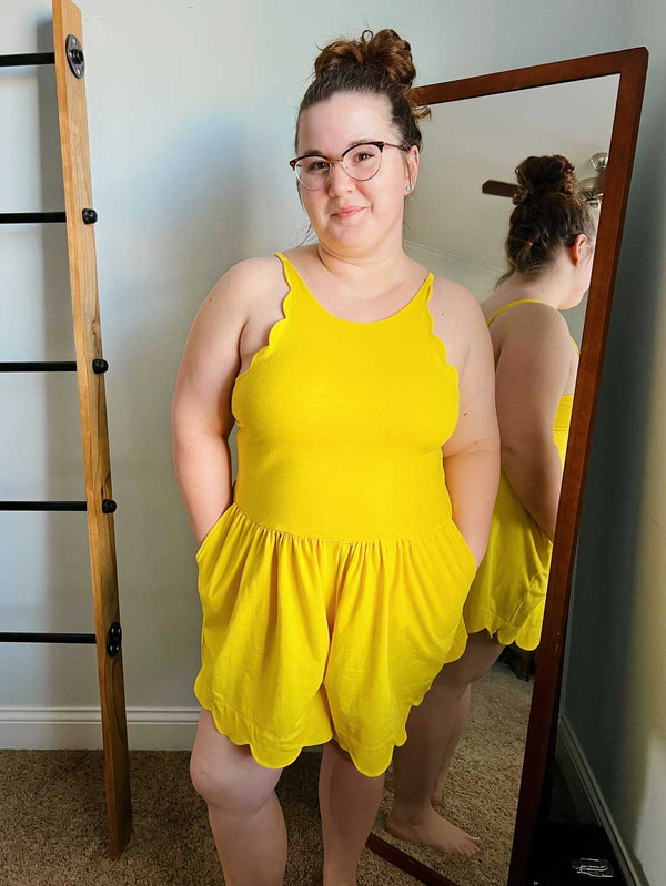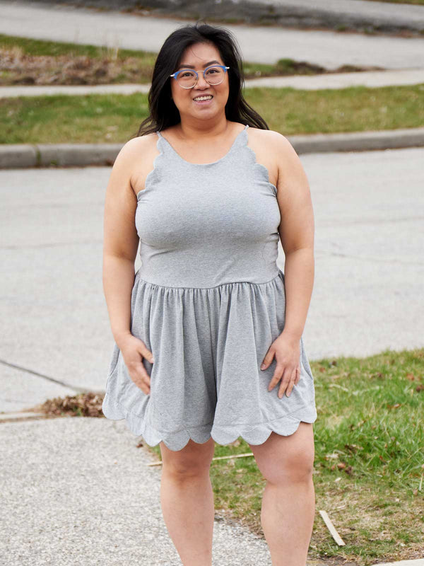 Playful and polished, the Wynn Dress and Romper is the perfect spring outfit. The soft scallops along the neckline and hemline add an elevated feel to this otherwise simple spring and summer dress. With two skirt lengths, a short romper, and of course pockets, Wynn is packed with options to suit your personal style.