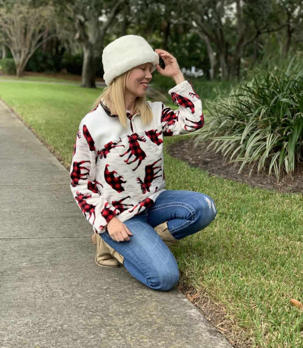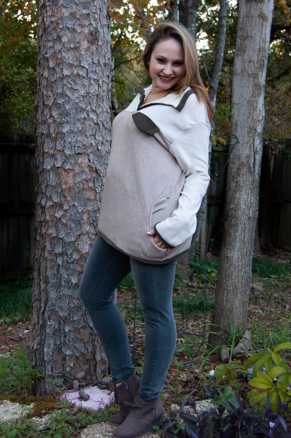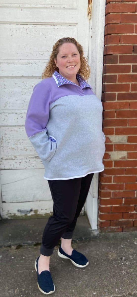 The Adults Pacific Coast Pullover (PCP) is the perfect cool weather sweater once those temps start to drop!  The collar can be turned up or down to protect your neck and ears from the cold and this pattern is made for fleece or sherpa fabric- making it extra snuggly! Check out some of the fun features below: