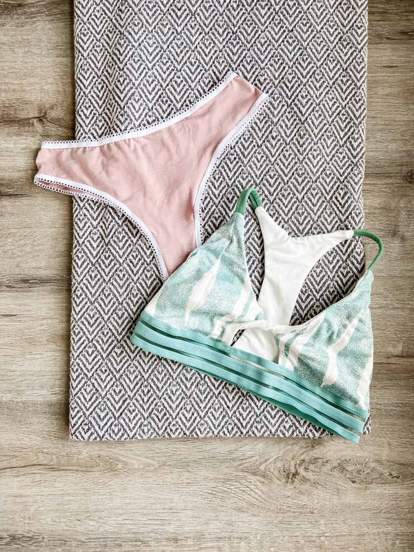 Bralette- 4 way knit. The fit/comfort will change depending on the stretch content and recovery. Straps can be lingerie elastic, swim elastic, FOE. Band- can also be 2” elastic. *Optional 1/4 clear or swim elastic to add at seams.