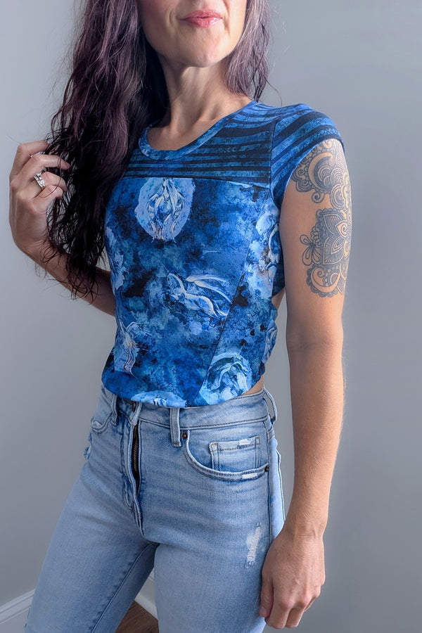 Brinley is ready for action! From workout to dance, casual or swim, the Brinley Baby Tee packs all the options! Featuring a banded neckline, seam details, two lengths, three sleeve options, and gorgeous back details, this tee is sure to be a shining star! Play with fabric selections to create looks from casual to polished and wear the Brinley tee on a hike or out on the town! Whatever your style, Brinley has your back!