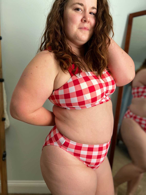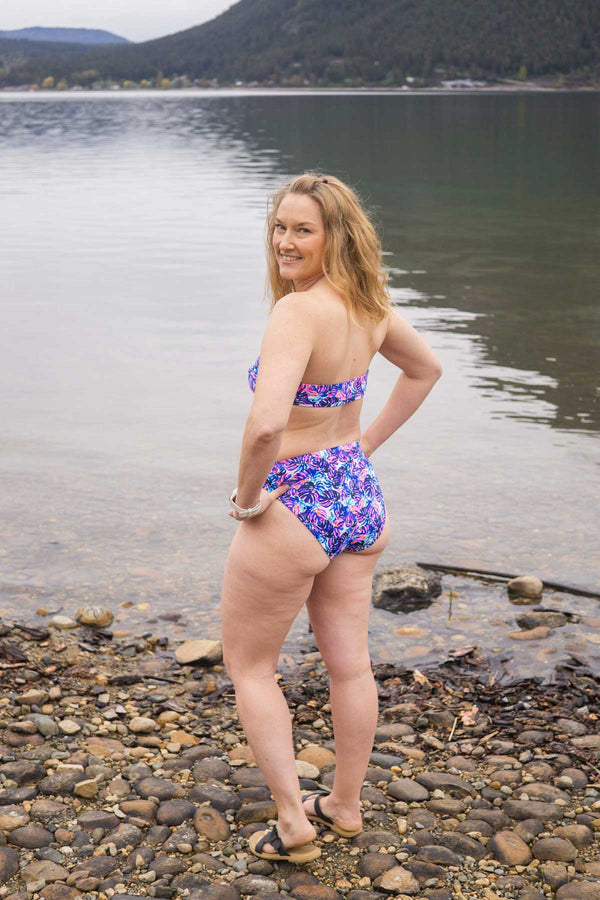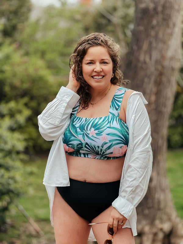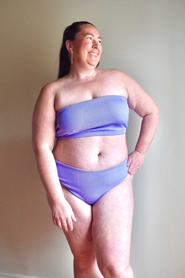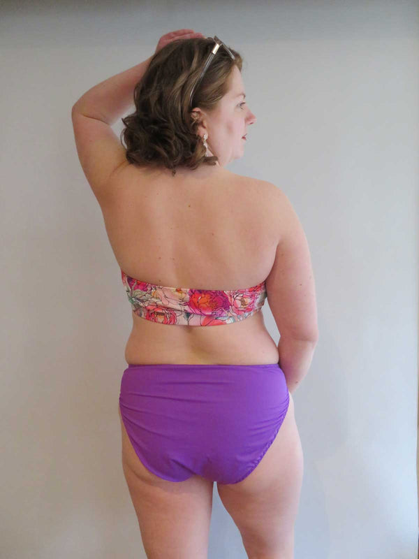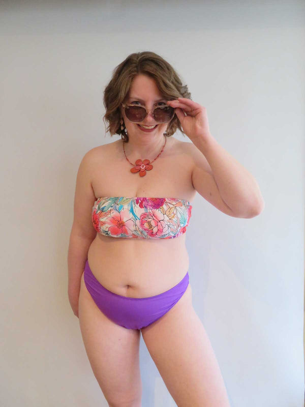 Introducing Cove, a simple swimsuit that feels both retro and new. The bandeau style top can be made on its own, or with the added convenience of optional straps for customizable wear. Cove includes a cupped bodice with a up to +5” FBA (Full Bust Adjustment), fitting a diverse range of body types with enhanced comfort and fit. The high-cut leg bottoms show off your legs for days. With all of the options available —mid and high rise, scooped and straight front, cheeky and bikini, and two front cut lines this swimsuit lets you choose the options that feel right. Whether lounging by the pool or soaking up the sun on sandy shores, Cove elevates your swimwear game. Dive in to swimwear this season with Cove.