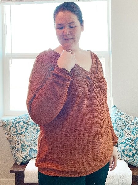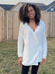 This relaxed fit sweater is perfect to wear on its own or layered over a tank or cami anytime comfort is paramount! With three different styles, such as the simple V-neck, cross over bodice or faux button placket (no buttonholes required!) you're sure to find your cozy look while being cute to boot!