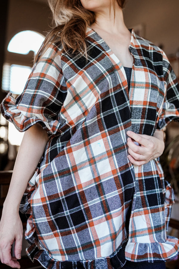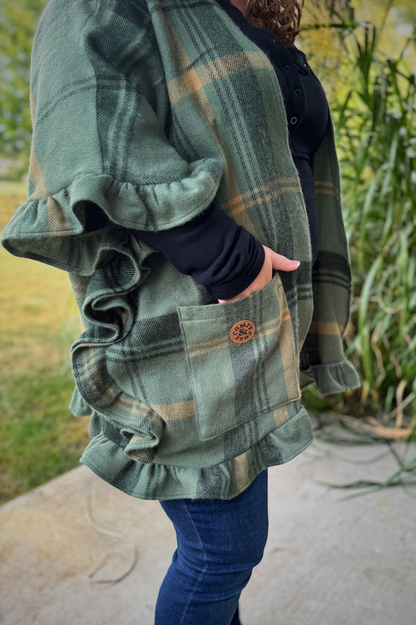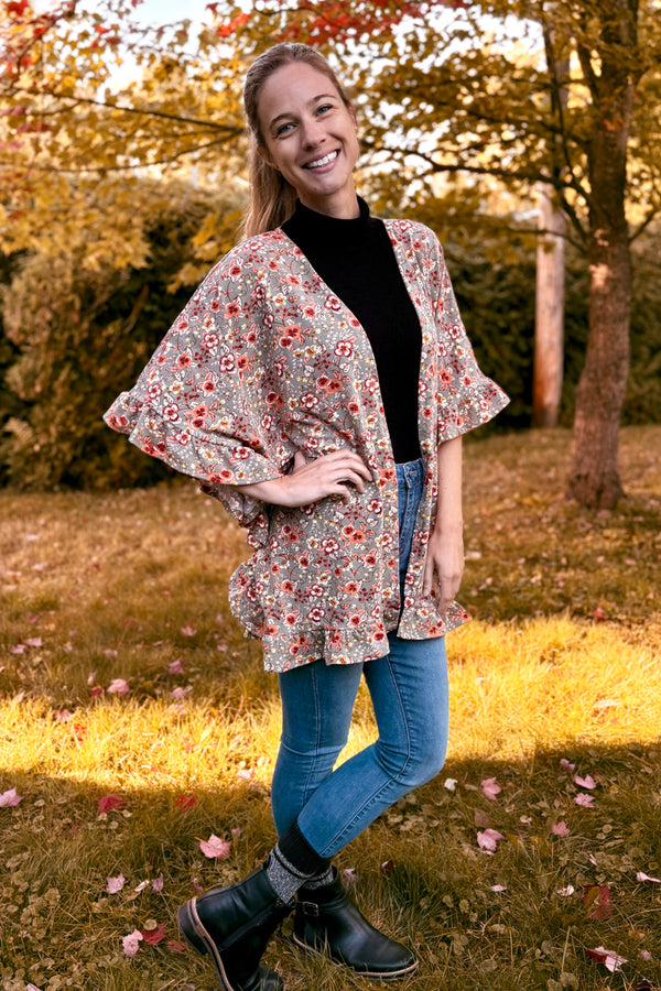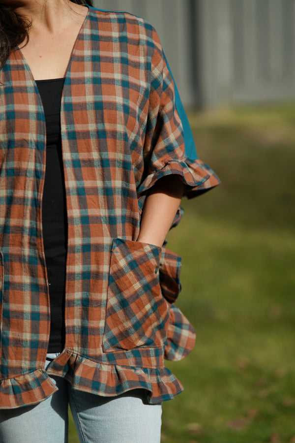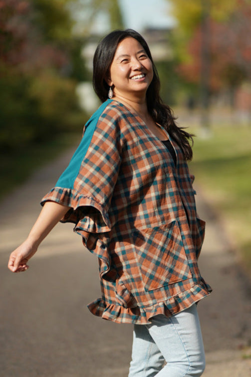 The Eira Cardi is the perfect piece to transition through the seasons! Layer over a dress with boots and cozy socks, pair with a tee and jeans, or add cozier layers underneath as the weather cools off. When warm weather comes back around Eira will be the perfect sunny day companion over your favorite swim apparel. The ruffles add such lovely interest that will make this an eye catching piece and of course there are pockets!
