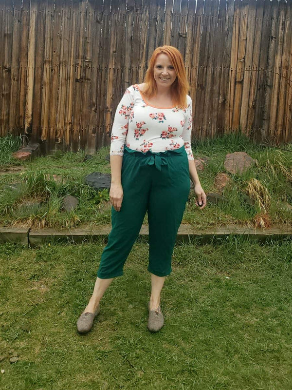 There are options for two different styles of trouser pockets- patch and inseam, both of which are perfect for snacks! Add belt loops and a sash to help define the waist- or skip the sash and add your favorite skinny belt. For the shorts, there is an included option for a cuff and button tab!