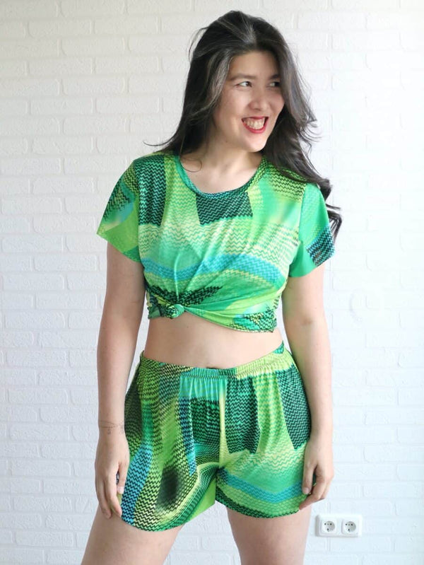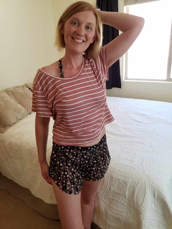 *Most knit fabrics will work. Bodice does not require more than 30% stretch. 50% stretch needed for neckband. Jersey,french terry, DBP, CL and more will be fabulous for this top!