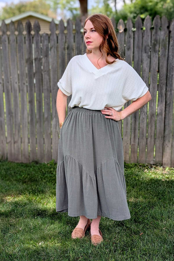 Easy to sew, comfortable to wear, and sure to draw attention wherever you go- that’s the Leighton Midi & Maxi Skirt!