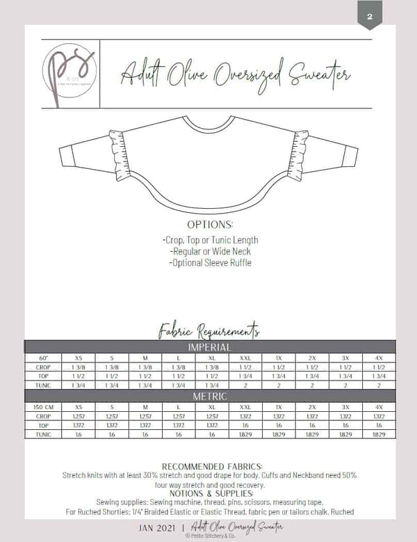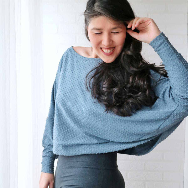 Olive features a unique split banded hem making it a breeze to sew- no hemming here. A wide neck option is available for that perfect off the shoulder look that we just can’t get enough of!