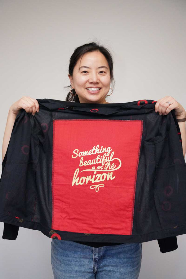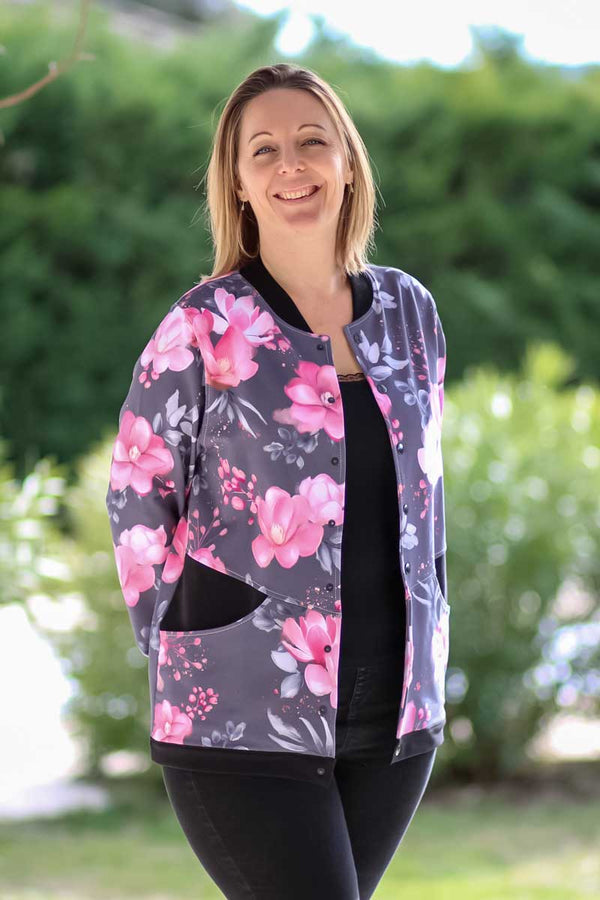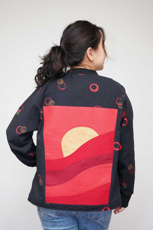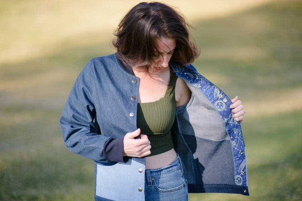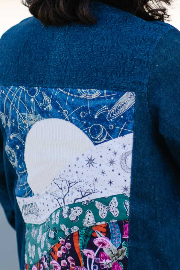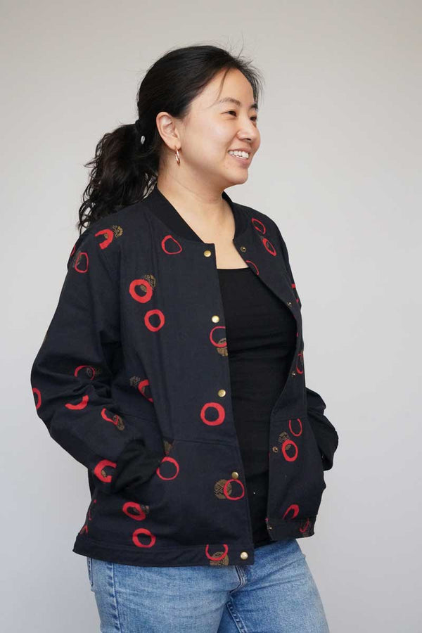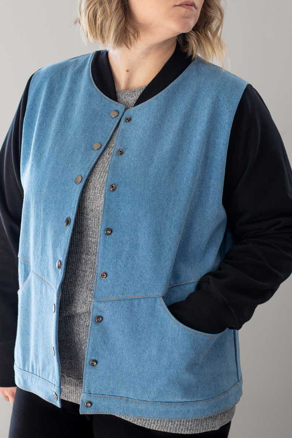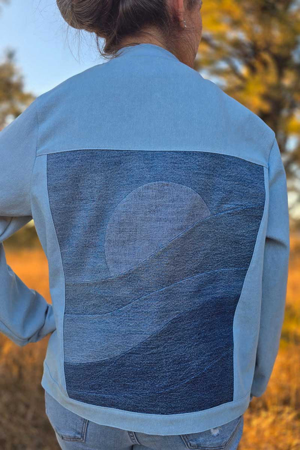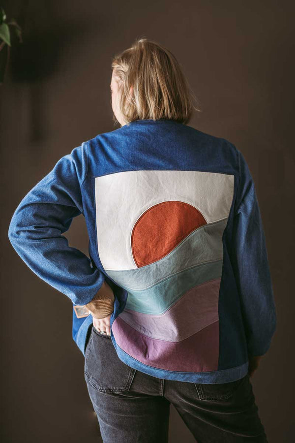 You can keep it simple or have fun with color-blocking to make it your own. The back panel features a sunrise or sunset design, perfect for using up those special fabric scraps. However you style it, the Rowan Jacket is a versatile go-to for any season.