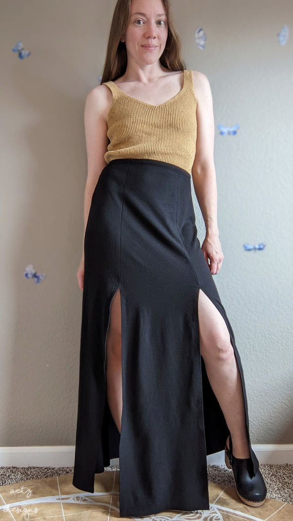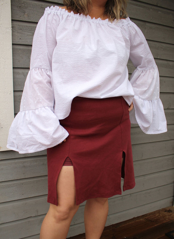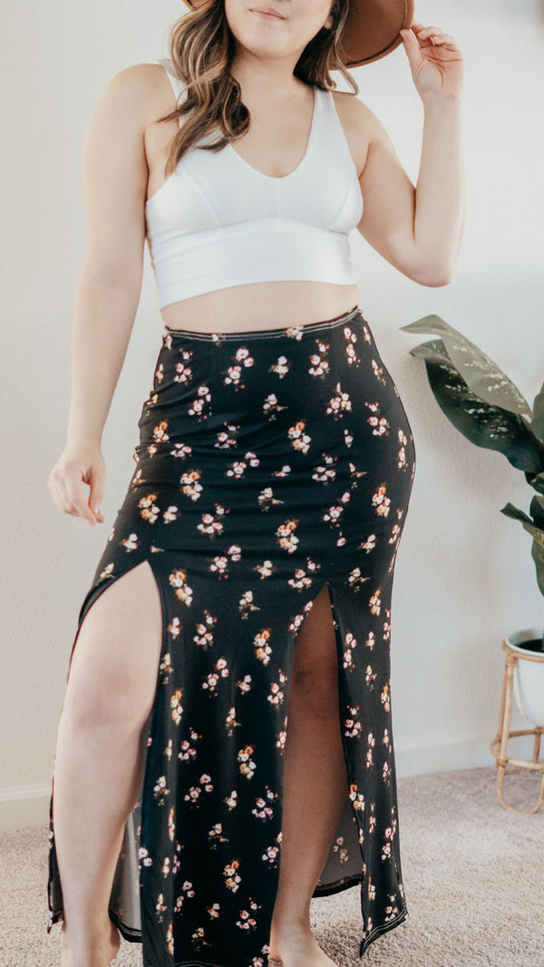 We are so excited to introduce you to the new Stella Slit Skirt. Stella is high waisted, trendy and can be dressed up or down!