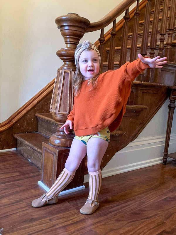 The Norah Shorties are perfect for showing off those chubby baby legs. Pair them with tights for year round wear!
