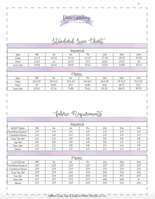The Baby Saffron Crop, Top, & Dress is the perfect quick-sew woven garment for year round wear! Saffron is available in sizes NB-24M and has enough options to please your little one! Check out some of these features: