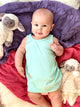 -Tank Romper with Henley placket (and optional snap crotch placket)