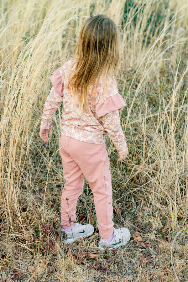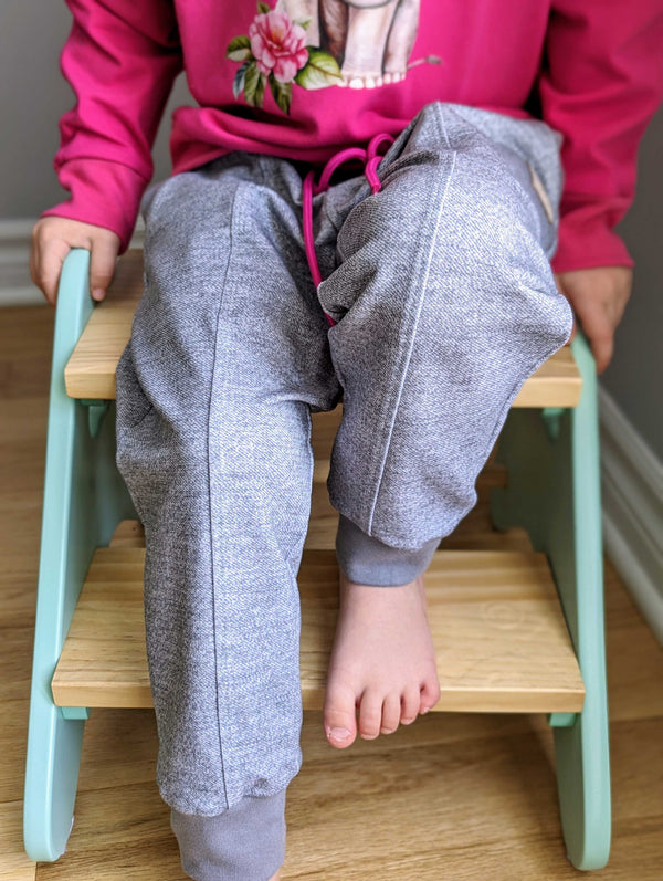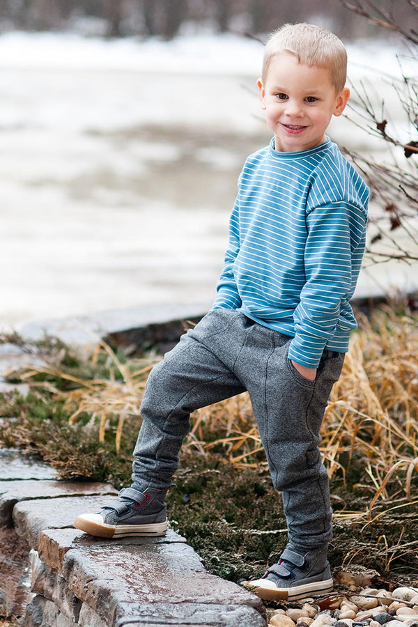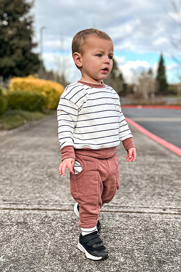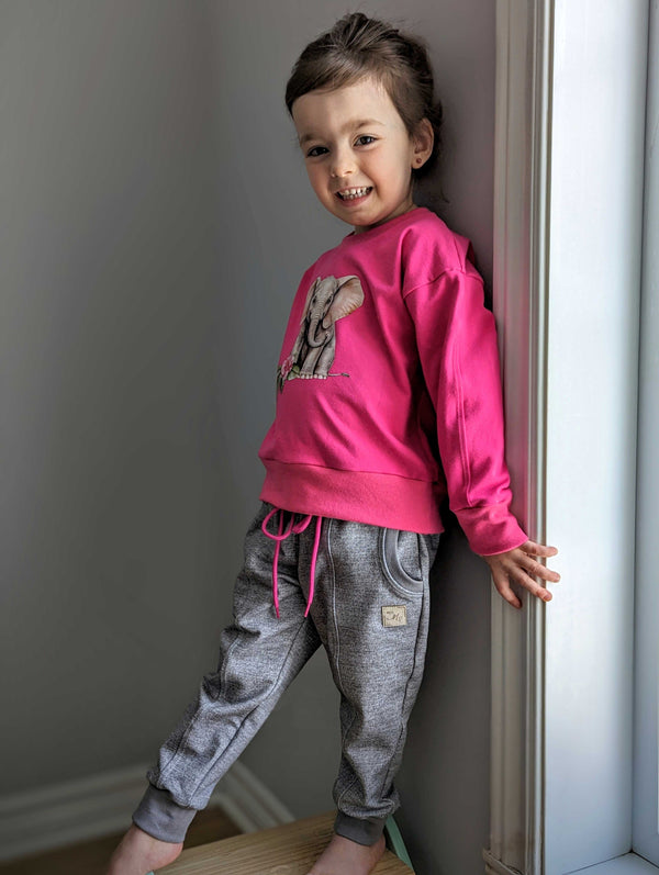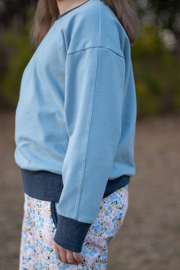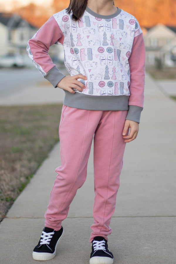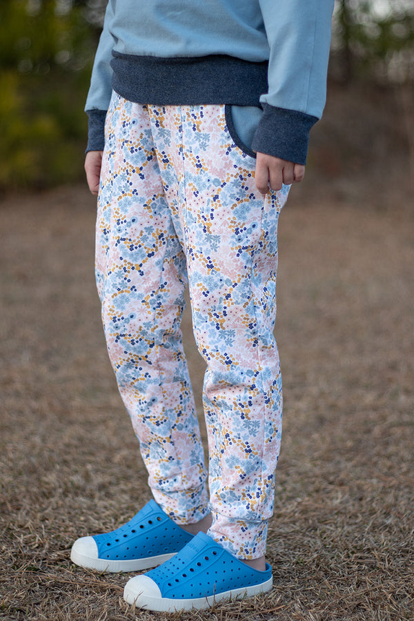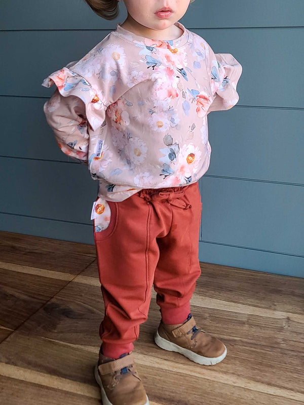 Step into the world of creativity with the Arden Pattern, offering a duo of a stylish top and joggers! With its versatile options, you can mix and match to create a wardrobe full of personalized and adorable outfits for the little ones! The top offers options for short or long sleeves, optional ruffle and an additional center seam sleeve for a coordinated look. The joggers feature a unique front center seam, optional ruffle, a faux drawstring, and half-circle pockets.