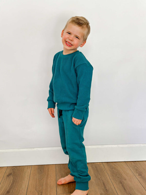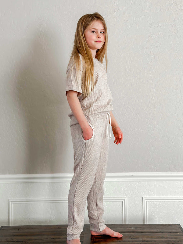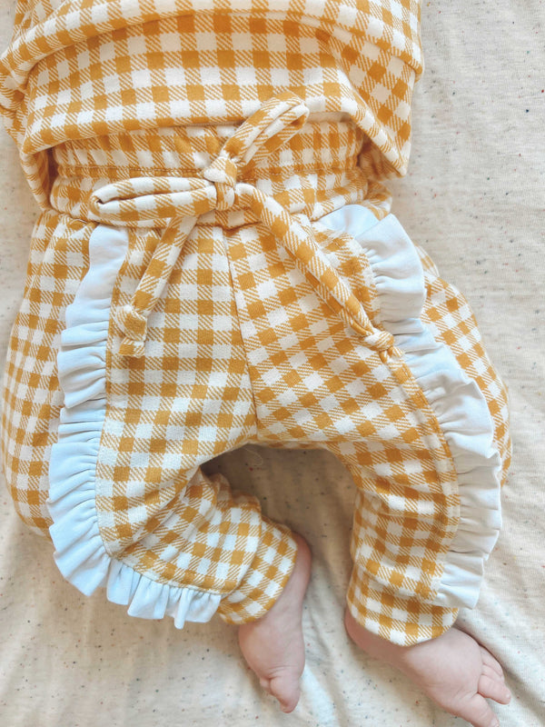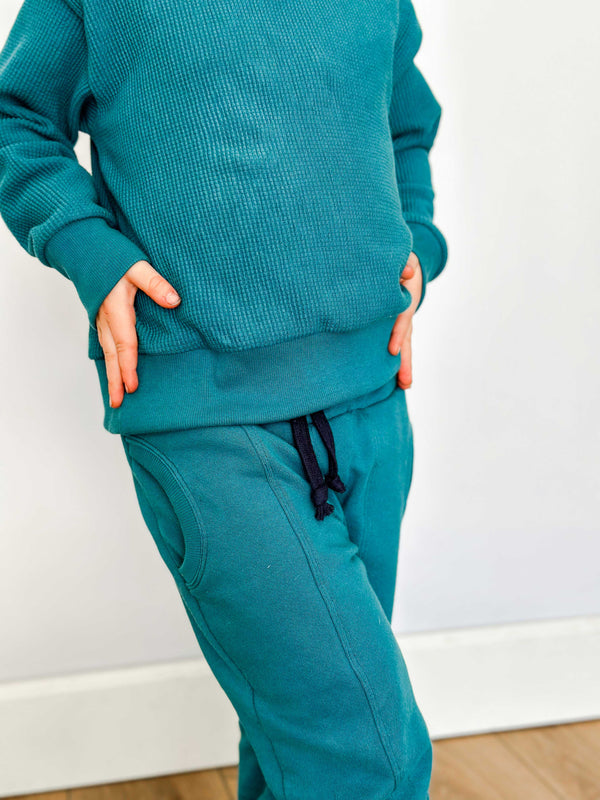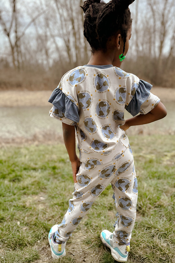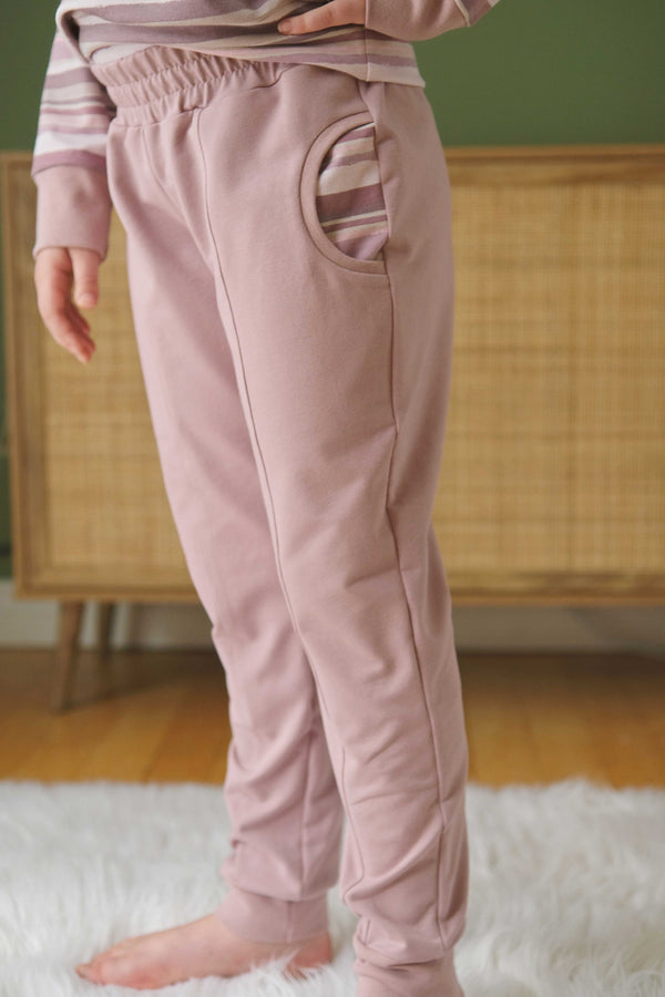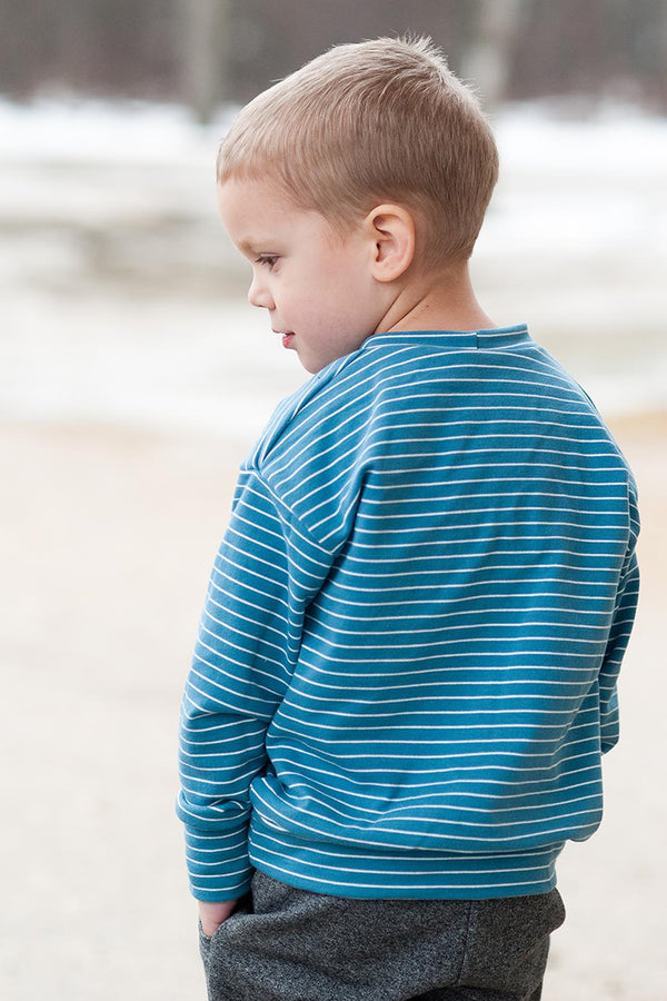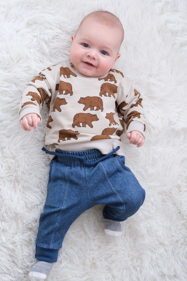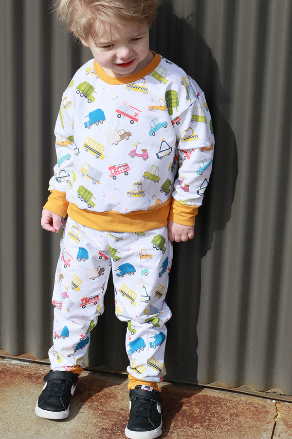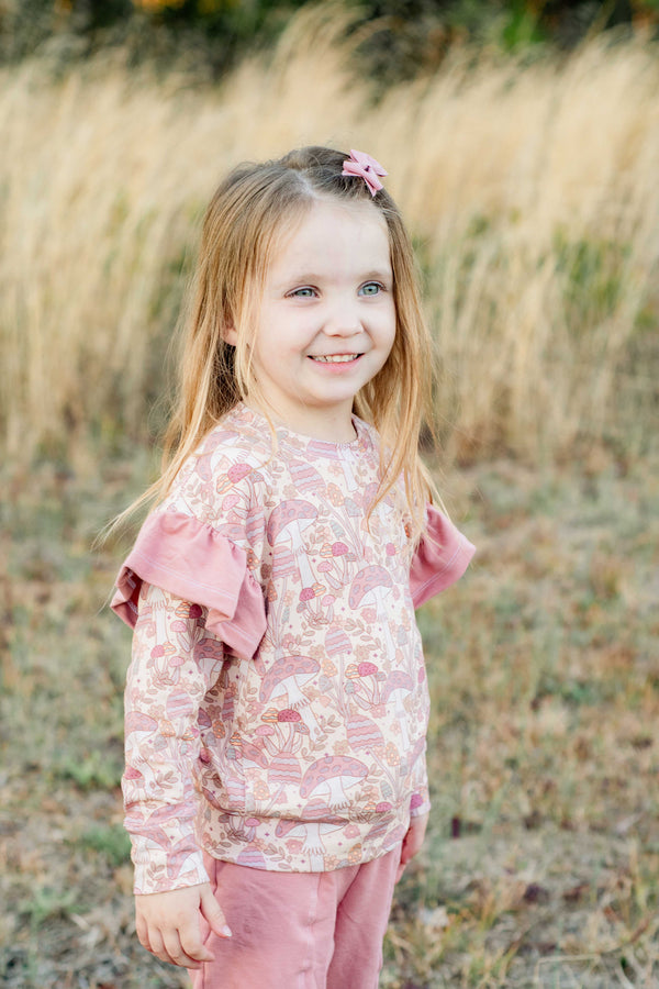 Step into the world of creativity with the Arden Pattern, offering a duo of a stylish top and joggers! With its versatile options, you can mix and match to create a wardrobe full of personalized and adorable outfits for the little ones! The top offers options for short or long sleeves, optional ruffle and an additional center seam sleeve for a coordinated look. The joggers feature a unique front center seam, optional ruffle, a faux drawstring, and half-circle pockets.
