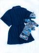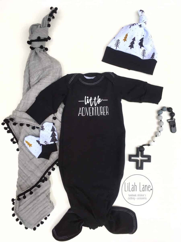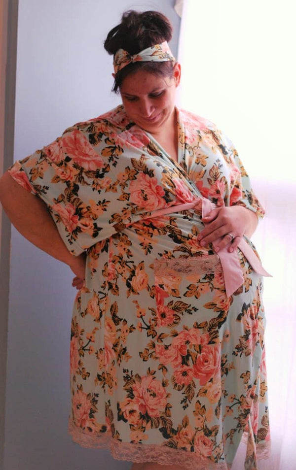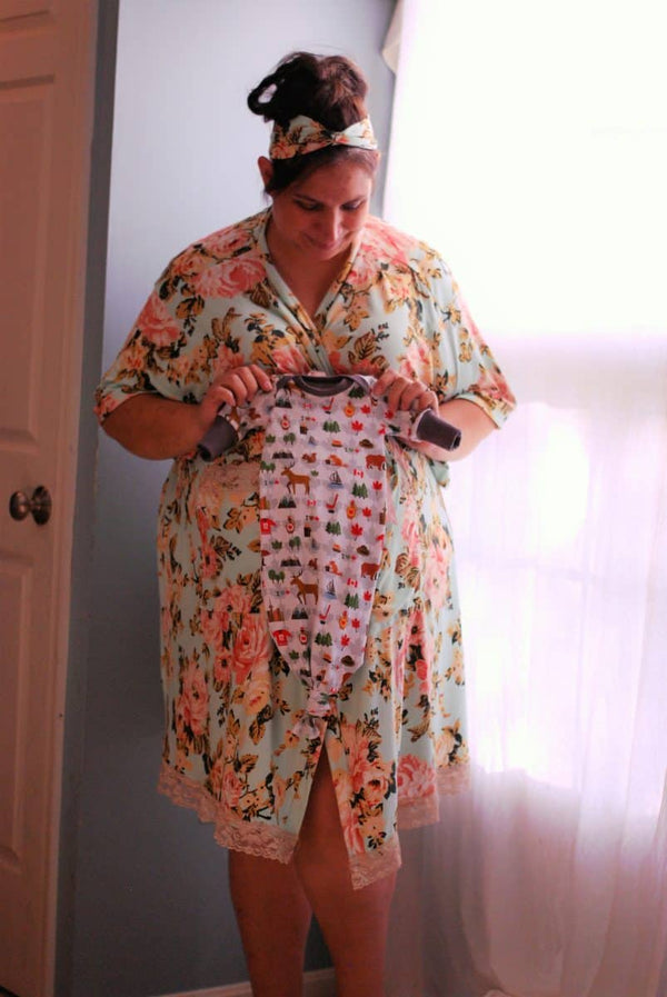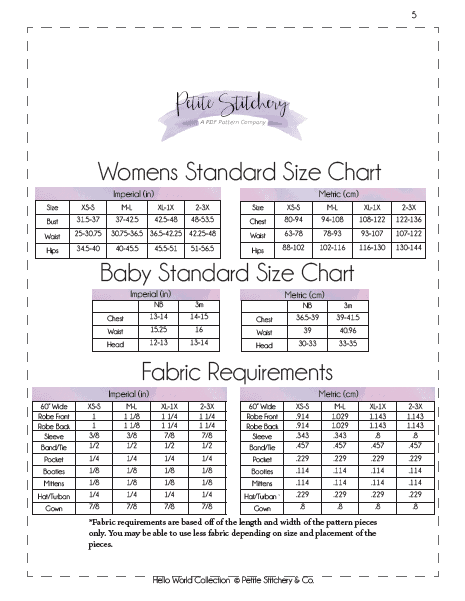The Hello World Collection is a series of patterns designed with new mamas and babes in mind. For mama, this pattern features a relaxed fit, kimono sleeve robe with a waist tie and pockets. This robe is perfect for the hospital stay or lounging at home with baby. For baby, this collection features a comfy gown with either a fishtail or envelope hem and lapped shoulders. The Hello World Collection also comes with a cozy hat, booties, and scratch mitts for baby and matching headbands for mommy and baby. The Hello World Collection has all the patterns you need to make the perfect baby shower gift or welcome a new baby into the world!