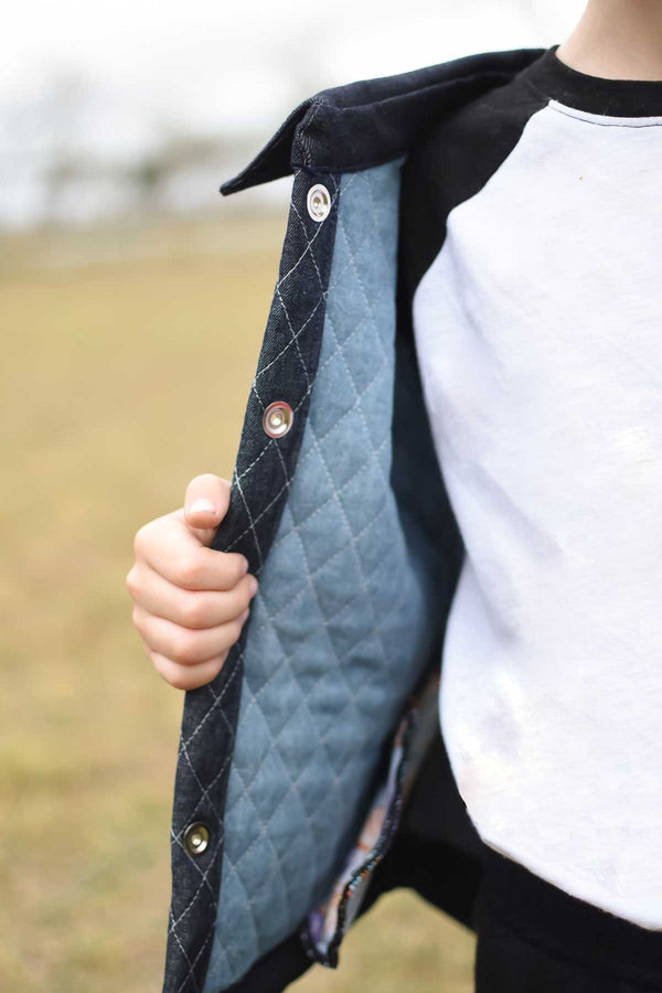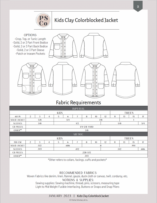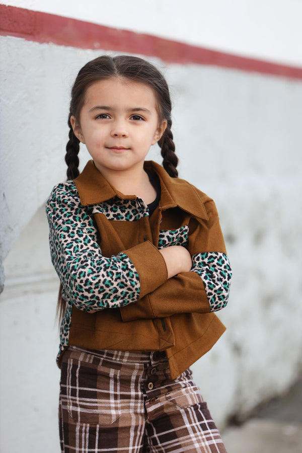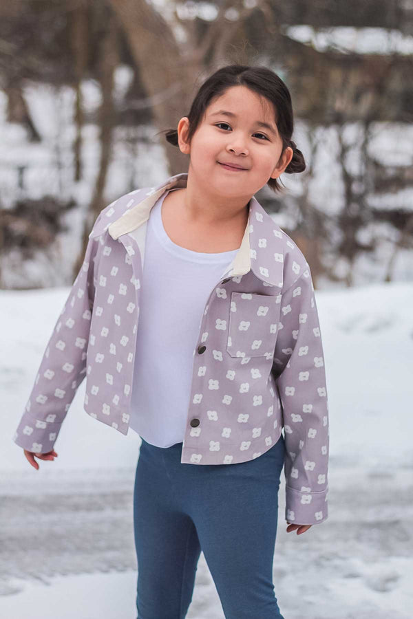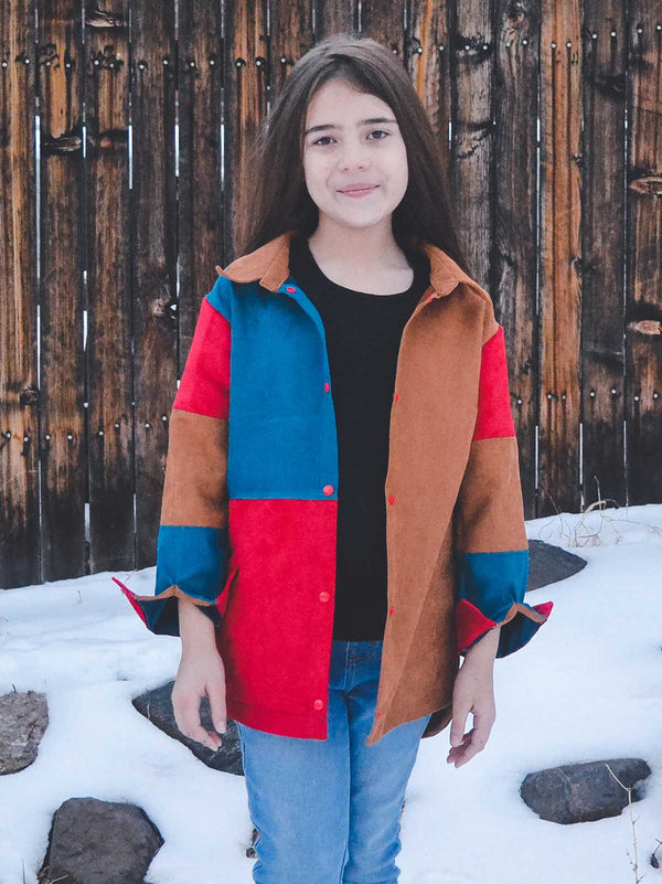 Clay features a classic collar, button cuff sleeves, front button closures and a whole bunch of fun options you can mix and match to make this jacket perfect for you or your little!