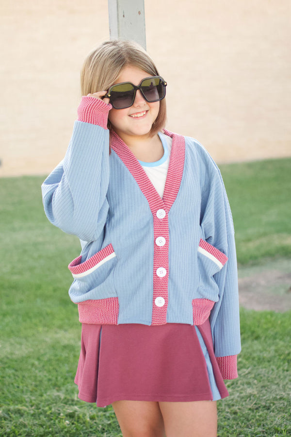 Get ready to cozy up with the Collier Varsity Cardigan!