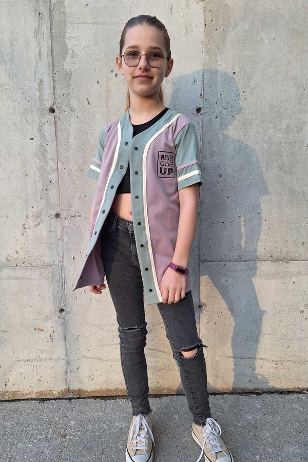 -Button Down Baseball Jersey Inspired Neckline