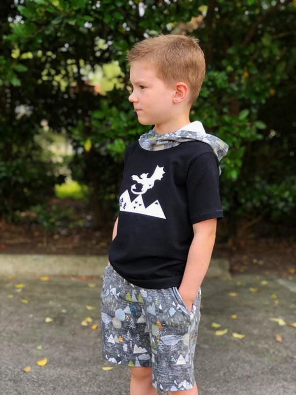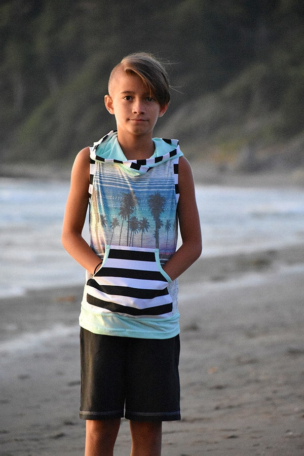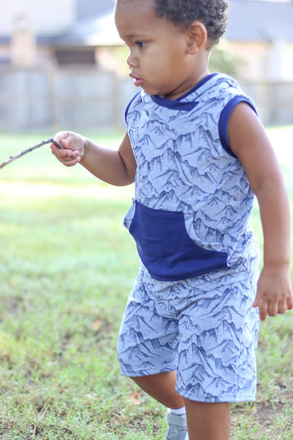 If you love ALL the options then the Dax Wardrobe Builder is definitely for you! Dax is jam packed with enough options to get your kiddo through any season of wear and with 13 sizes from toddler to tween, it will last you YEARS! Capsule wardrobes are my favorite things I sew for my kids, and with Dax- you can create your own from just one pattern! Here are a quick run down of the options: Tops- Choose from a muscle tank or a short/long sleeve tee. Top Add ons: Add a hood, neckband, shirt pocket, or kangaroo pocket. Bottoms- Shorts or Pants Bottom Add ons: Inseam Pocket and fun faux drawstring detail! All the components of the Dax Wardrobe Builder are easy to sew and easy to wear making this pattern a must have!