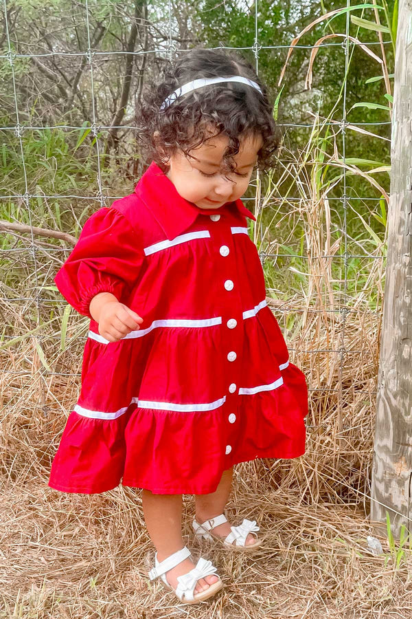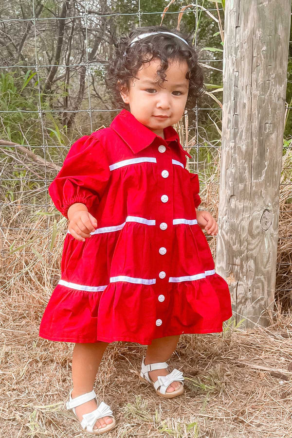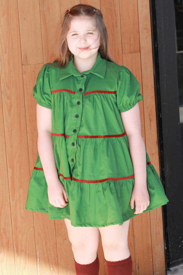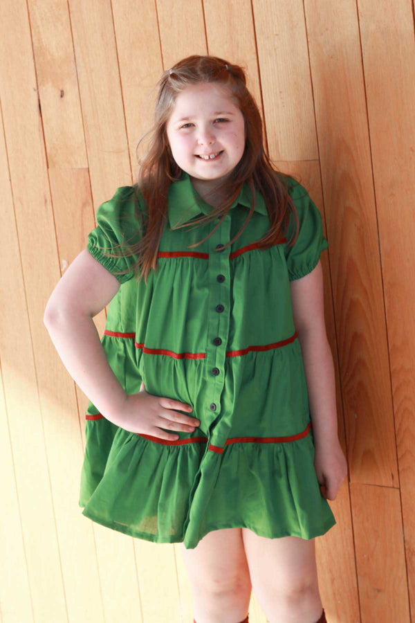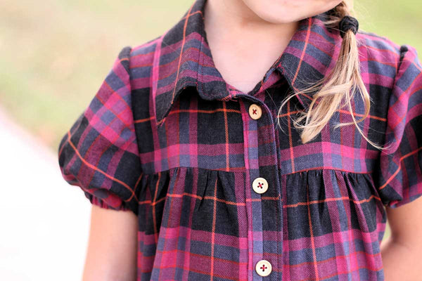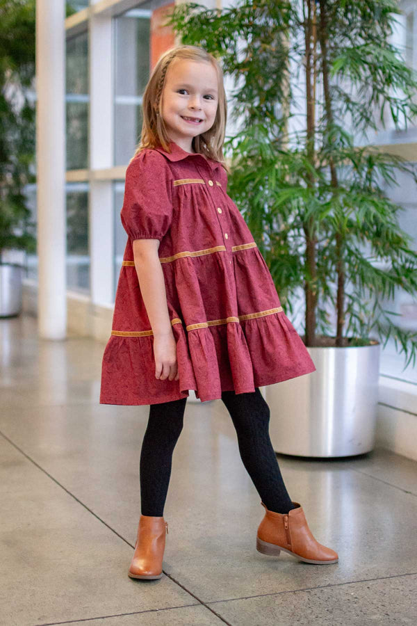 Meet the Fairlen Tiered Babydoll Top & Dress- the perfect show-stopping frock for all your holiday parties! This woven pattern features a tiered dress bodice, collared neckline, and get this- a faux buttonhole button placket! You read that right, this pattern requires no traditional buttonholes!