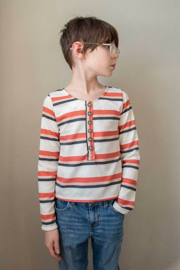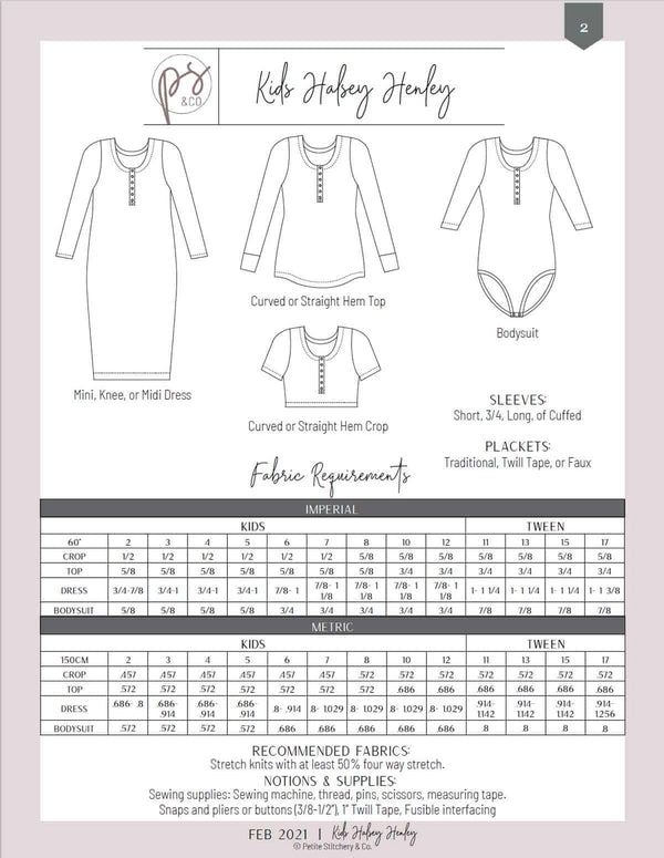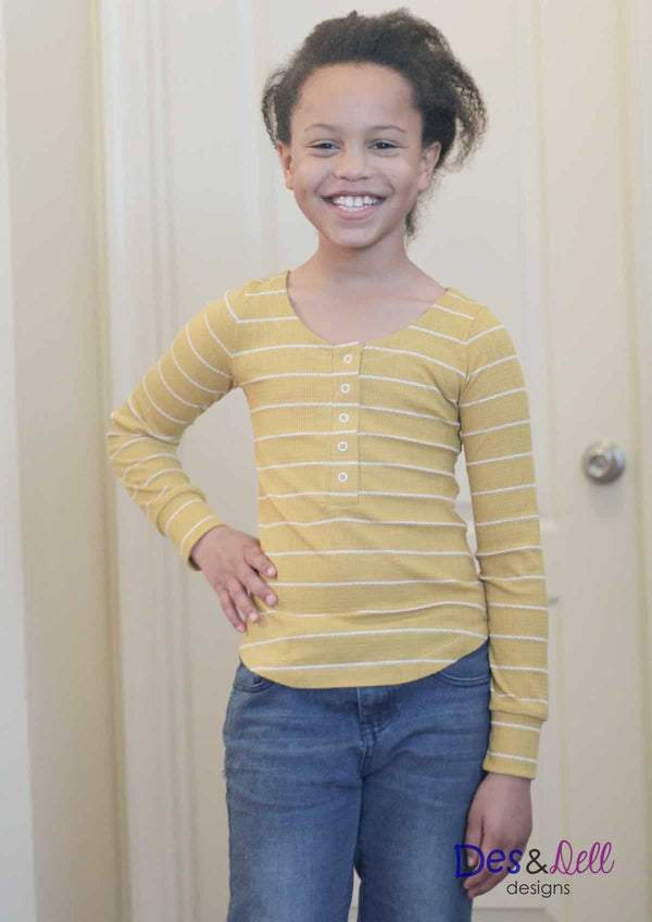 Halsey is a fitted henley pattern jam-packed with options! Not only will your kiddos look adorable- this pattern offers three different henley plackets. This is perfect if you're questioning your placket skills. We're not though- we know you got this!