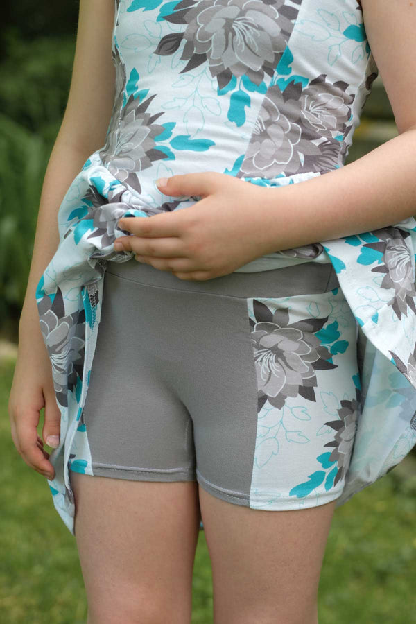 Included with both Kids & Adults sizes of the pattern are optional shorties. These shorties come with a contour waistband, a gusset for extra comfort, side pockets, and two inseam lengths. Perfect for layering under your dress or rocking on their own.
