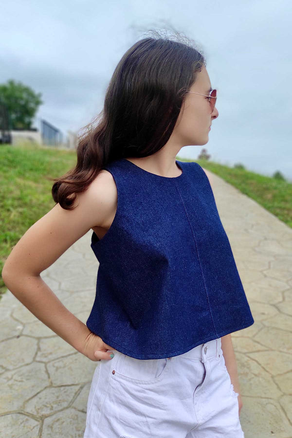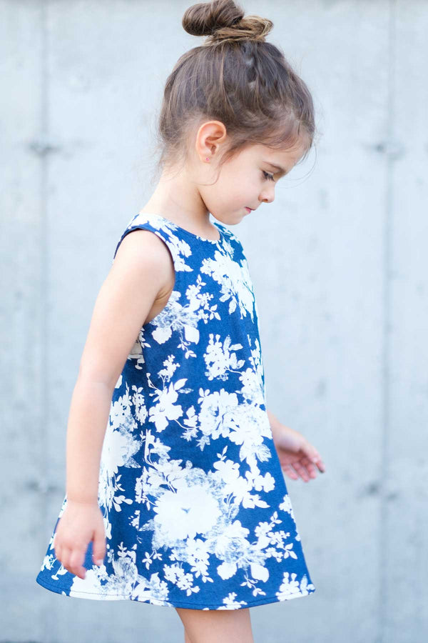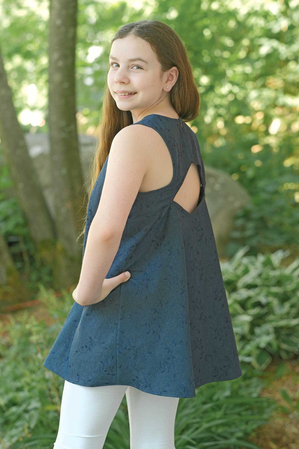 The Micah pattern is a breezy trapeze-style dress and top designed for woven