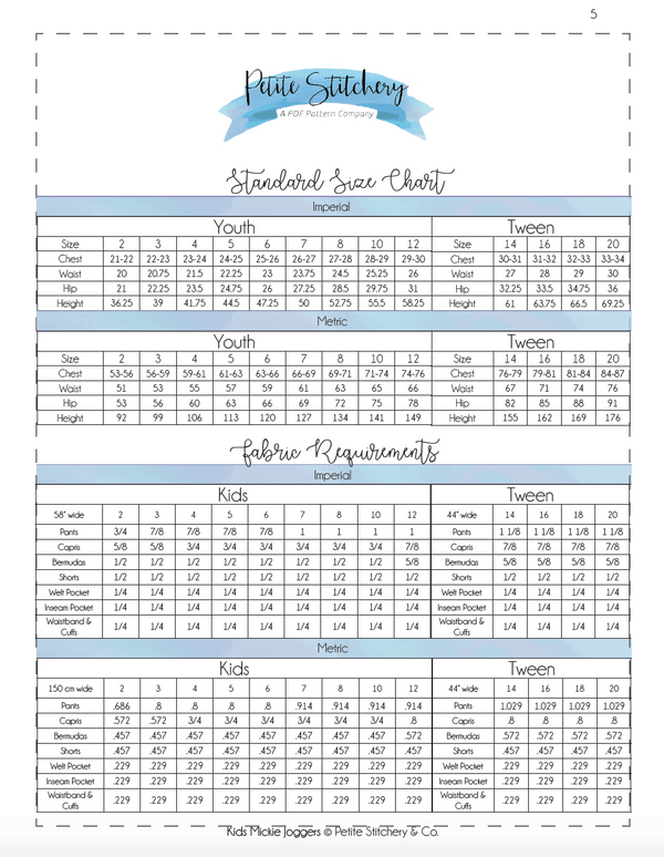 Meet Mickie, the only pants pattern you'll ever need! So probably the best part of this pattern is that there are options for both knit and woven pants and the unisex sizes run from 2-20- perfect for all the littles! Let's talk about some of these options: