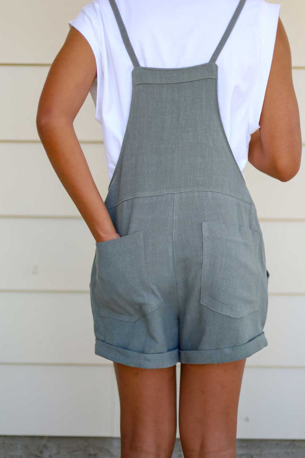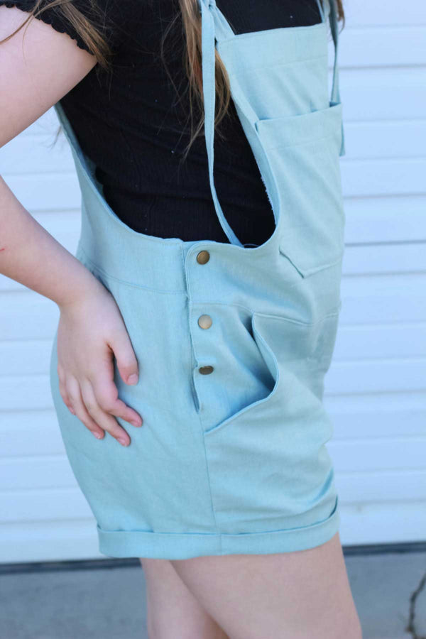 -Cuffed Hem, Hi-side Shortall with Faux Button Tab