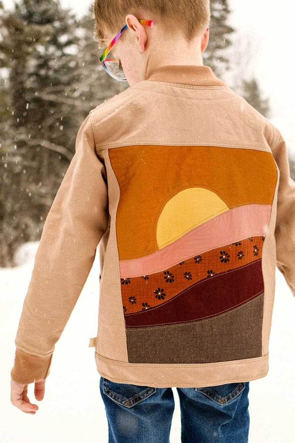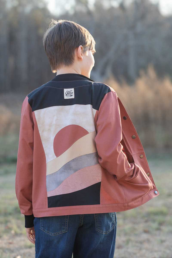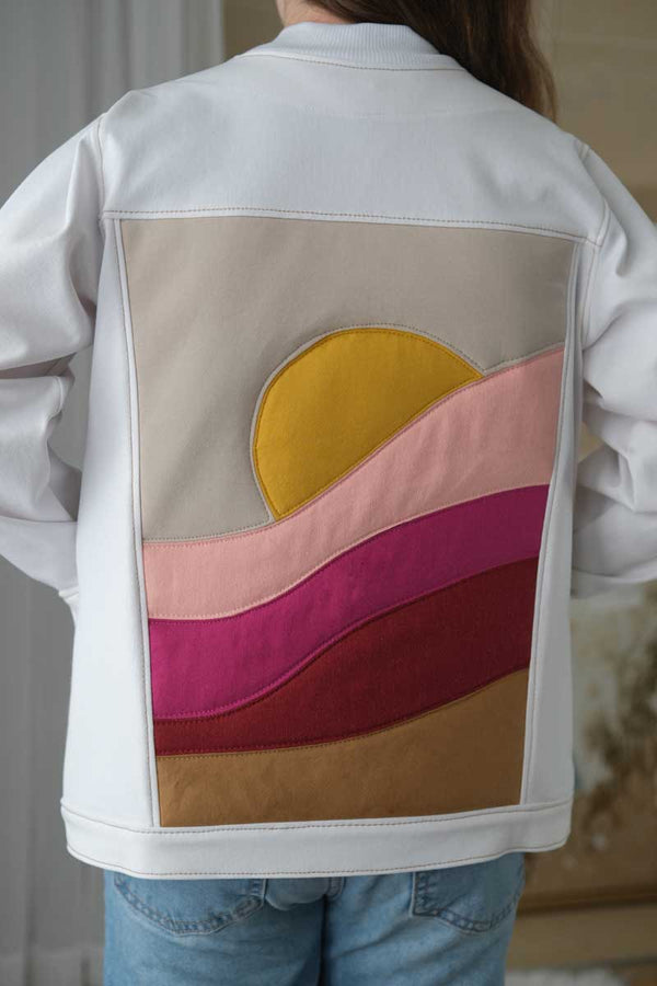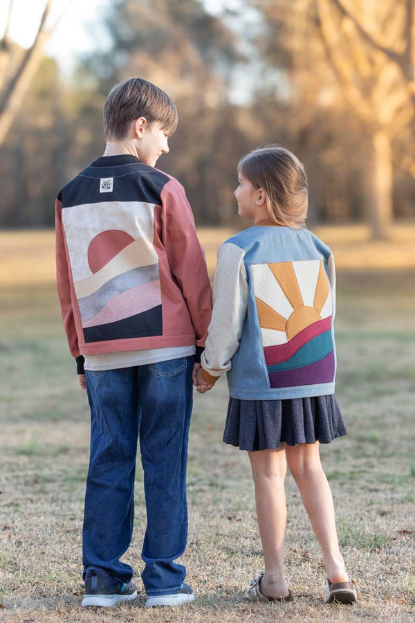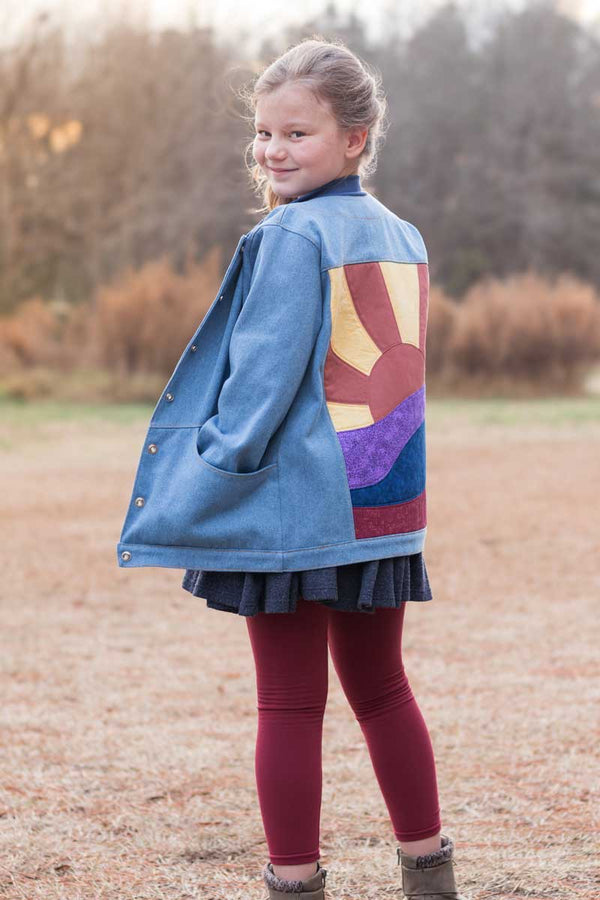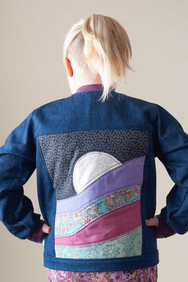 You can keep it simple or have fun with color-blocking to make it your own. The back panel features a sunrise or sunset design, perfect for using up those special fabric scraps. However you style it, the Rowan Jacket is a versatile go-to for any season.