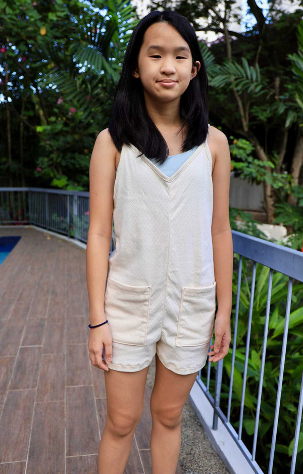 This trendy romper is sure to be one you'll go to over and over again. Ryan features a comfy, relaxed fit and can be made in short, flood, or pant length. With that open back and patch pockets, what's not to love?