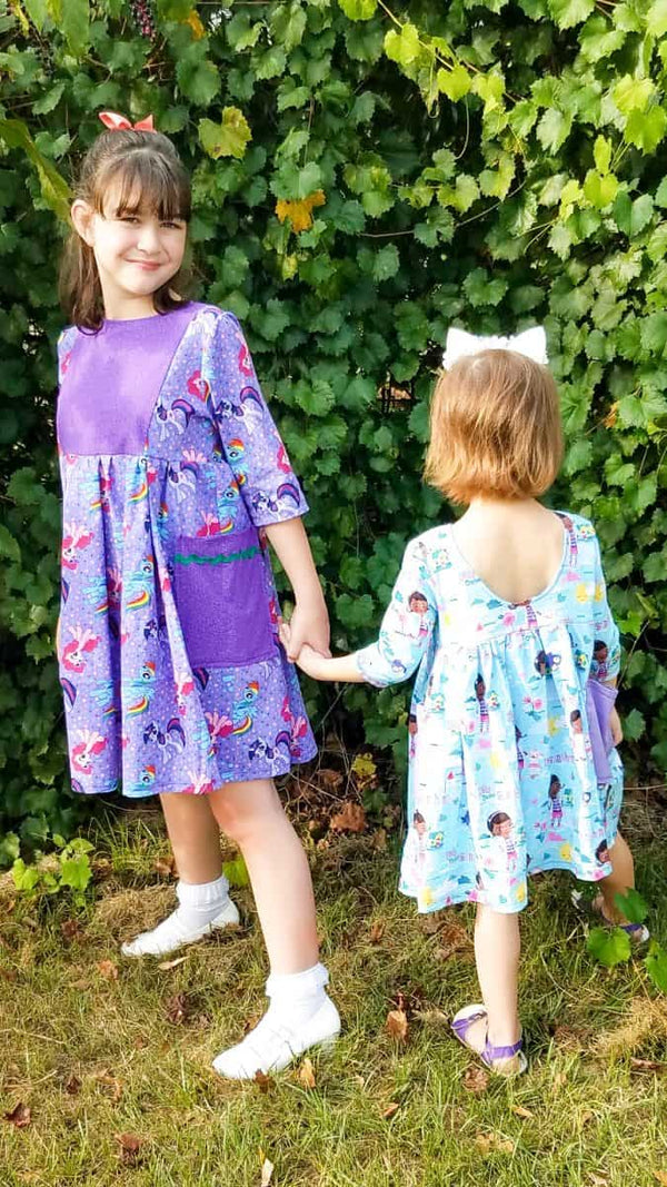 The Girl’s Saffron Crop, Top, & Dress is the perfect quick-sew woven garment for year round wear! Saffron is available in Girl’s Sizes 2T-17 and has enough options to please your little (or not so little) one! Check out some of these features: