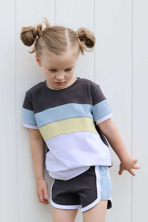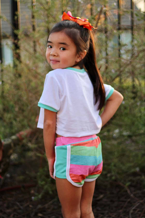 Skye is a vintage inspired Ringer Tee! Choose from sleeveless, short or long sleeves. Skye comes with a crop or top hem length option! There are 3 different amazing color block options to choose from!