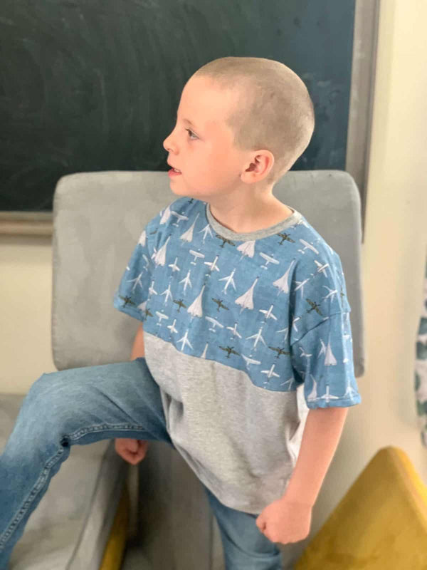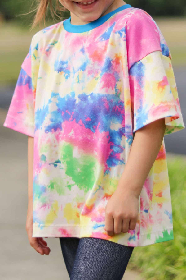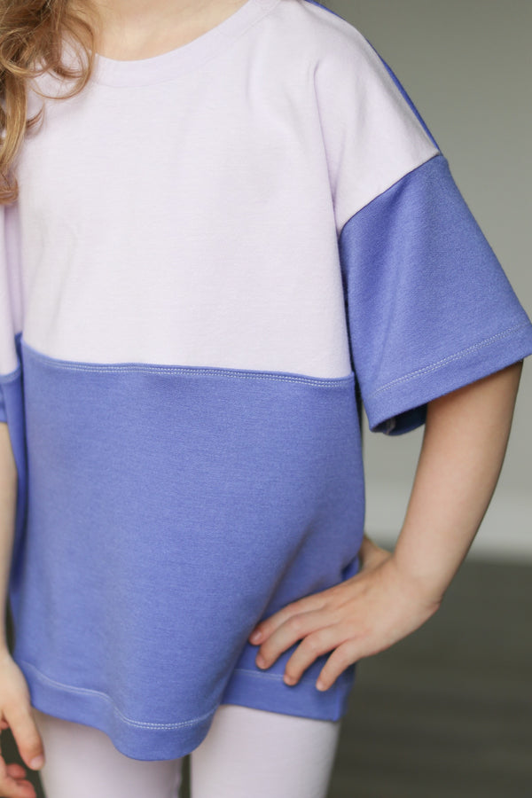 The Spenser Boxy Tee is just what the name implies- a boxy tee! It has a generous, oversized fit (meaning it will fit the kiddos for a good long while) and a dropped shoulder. It comes in multiple lengths from Crop to Midi Dress and has different colorblocking and sleeve options that are great for scrap busting!