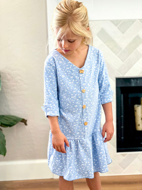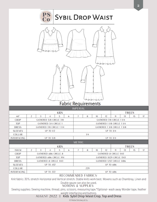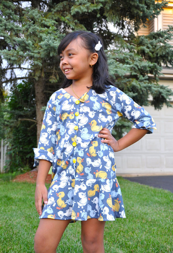 Sybil is all your drop waist dreams come true! This trendy, multi weather wearable, easy to sew pattern will knock your socks off! Sybil can be made in stable knits OR light weight woven fabrics such as linen, chambray and double gauze opening the door to many different fabric uses!