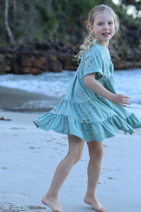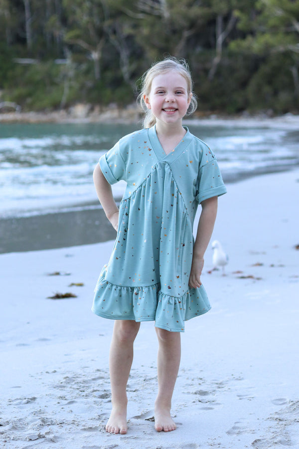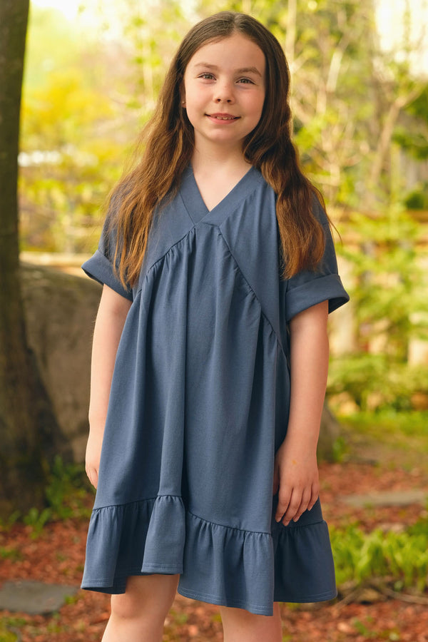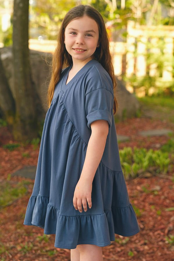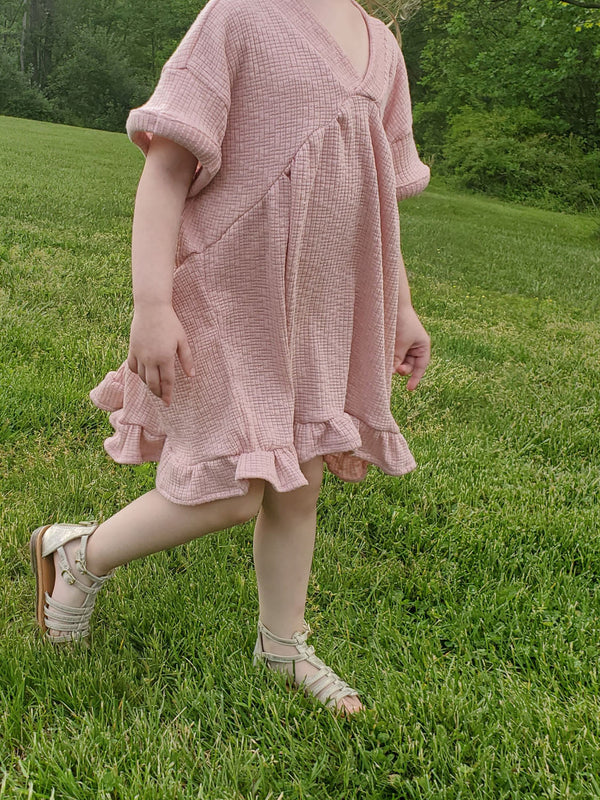 The adorable V neck, cuffed short sleeves and mini or dress length finish will be sure to be your favorite warm weather pattern.