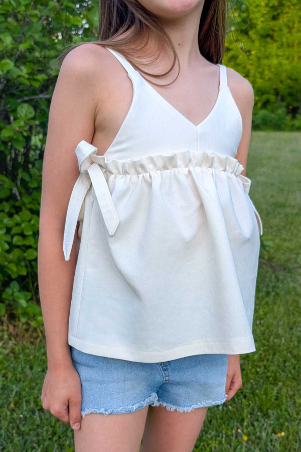 Tilde is drafted for woven fabrics like cotton and linen- making it not only beautiful but breathable as well! The babydoll style bodice is highlighted by delicate features like the front bodice ruffle and pintuck skirt. Tilde is a breeze to fit with an adjustable back, side ties, and adjustable straps!